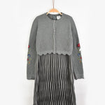 שמלת קפלים בשילוב קרדיגן סריג - אפור