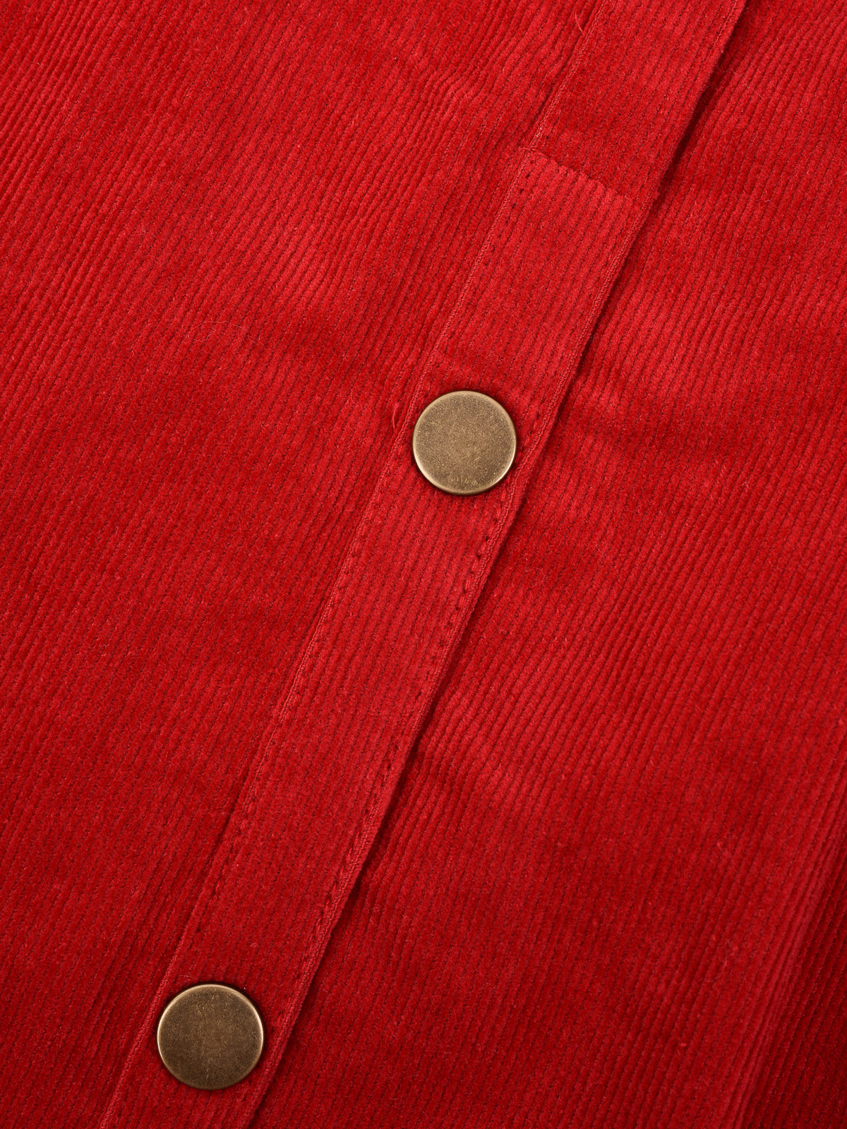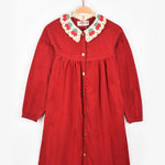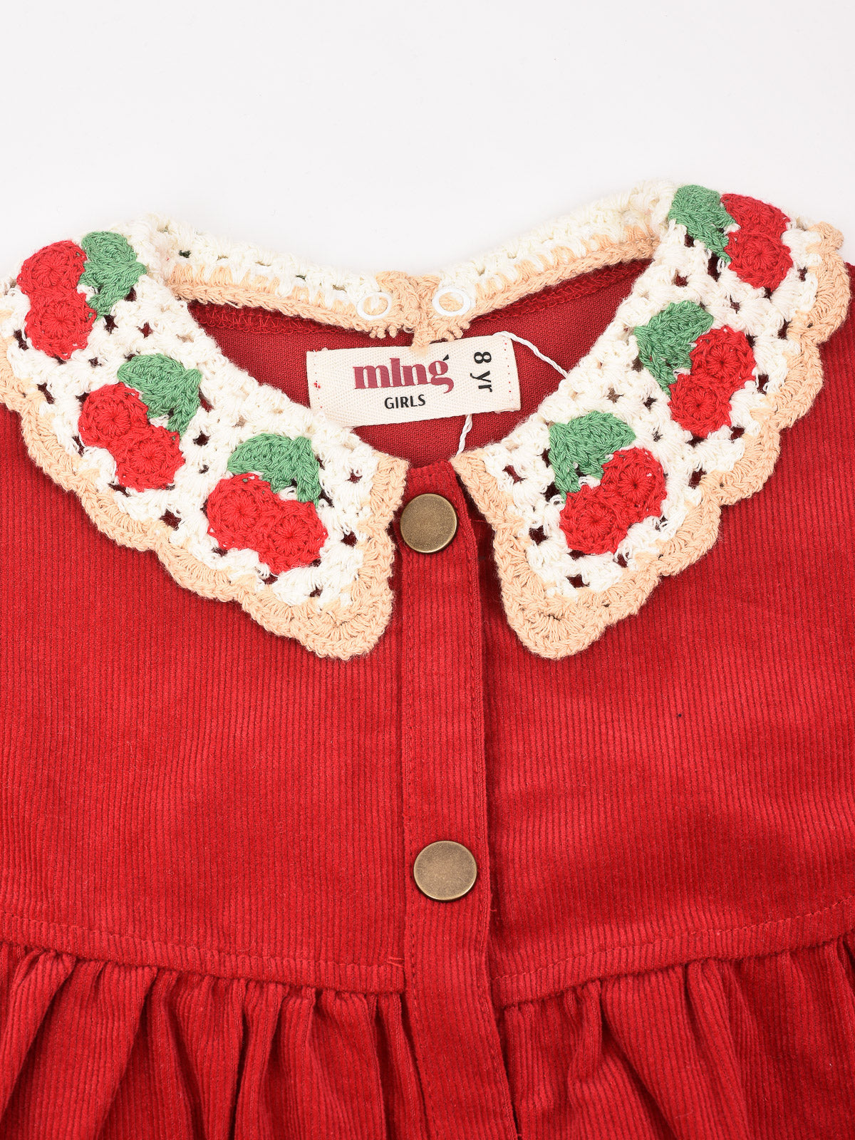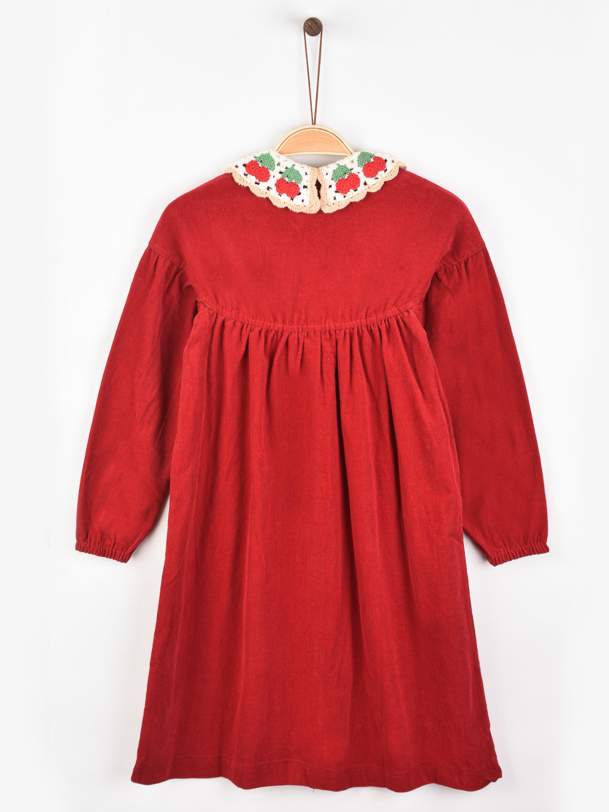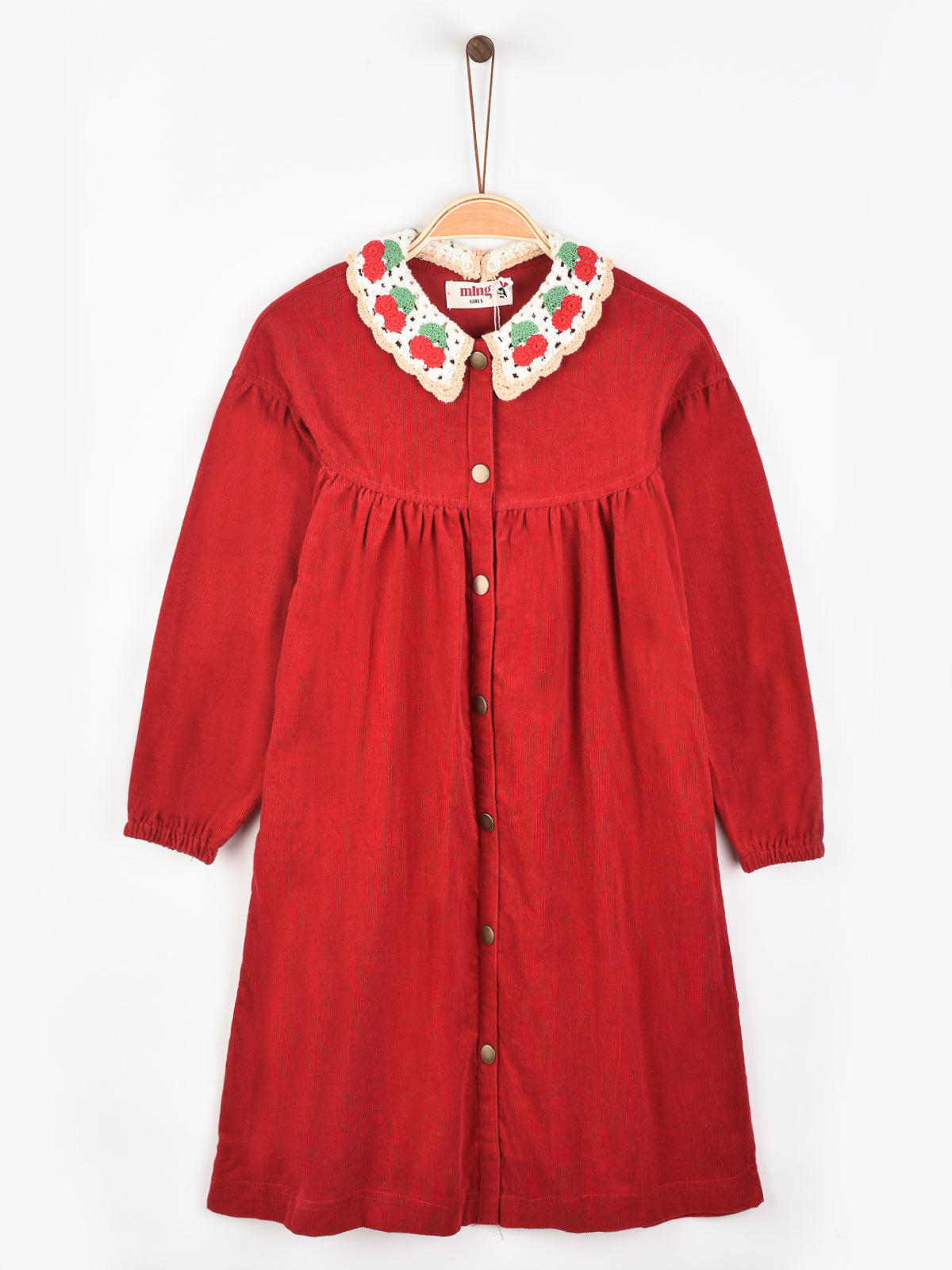 שמלת תיקתקים עם צווארון סרוג - אדום