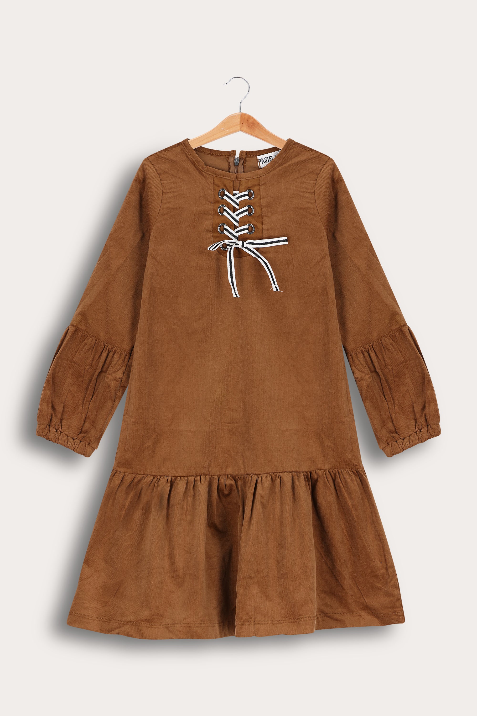 שמלת קורדרוי עם שרוכי קשירה - קאמל