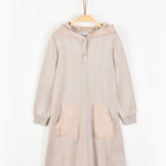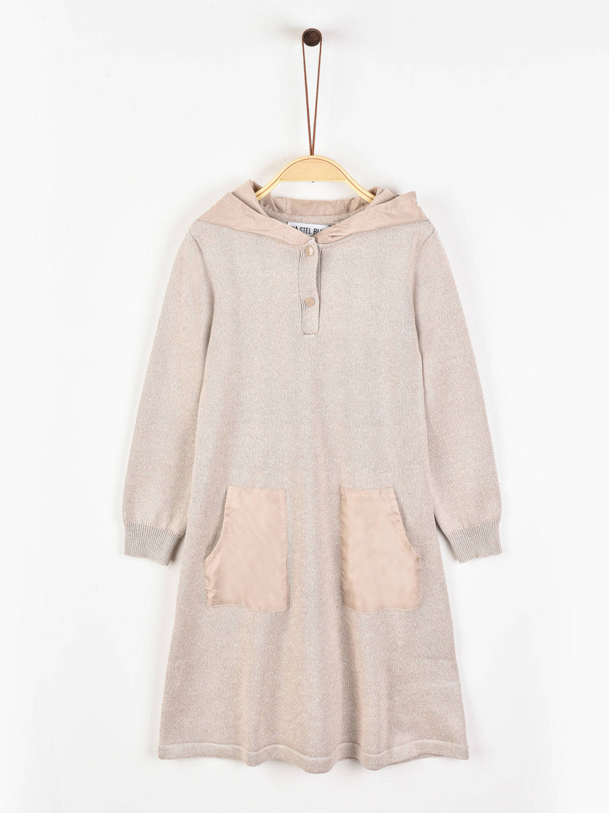 שמלת סריג חמה ונעימה לבנות, בעיצוב מודרני עם קפוצ׳ון ושרוולים ארוכים.