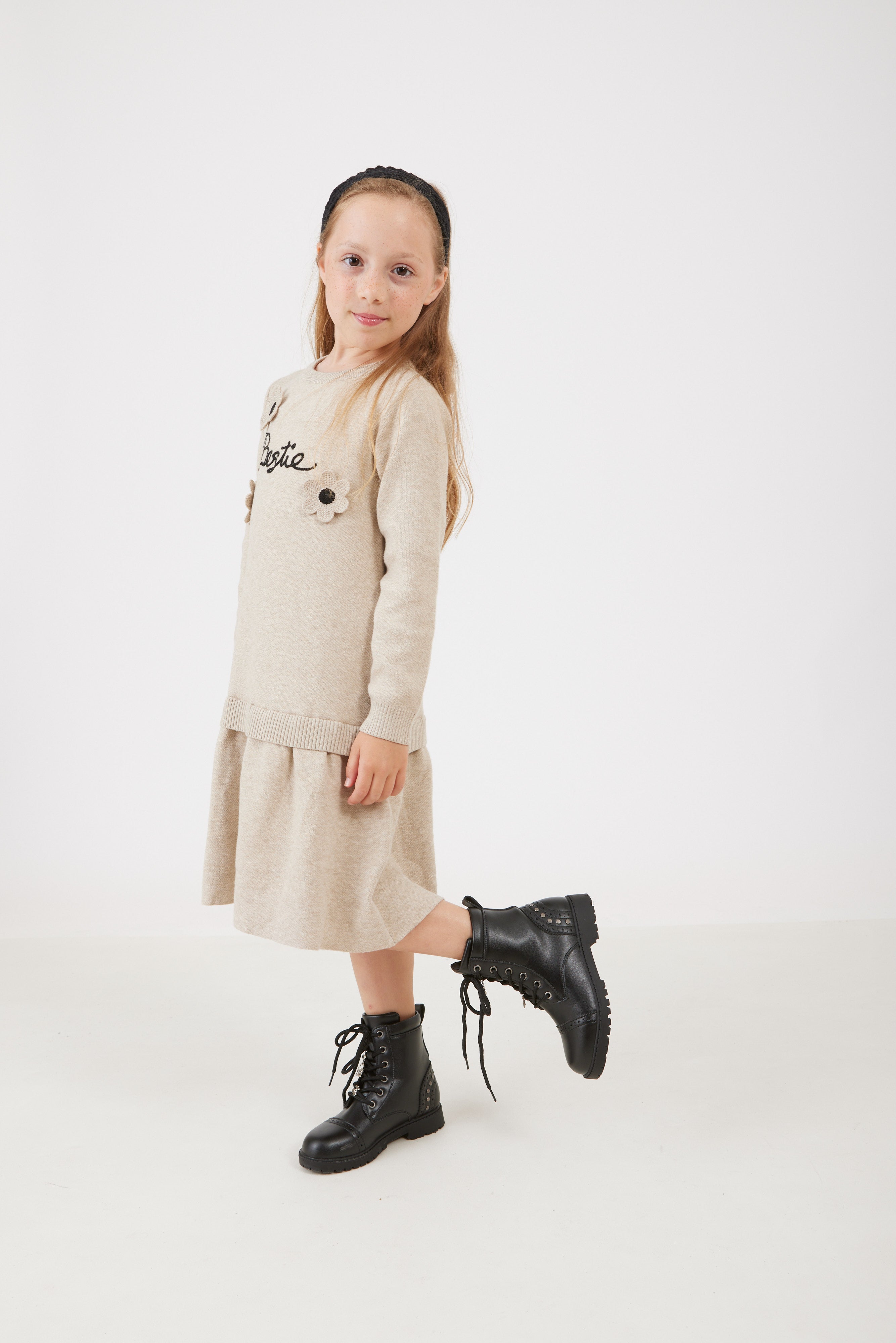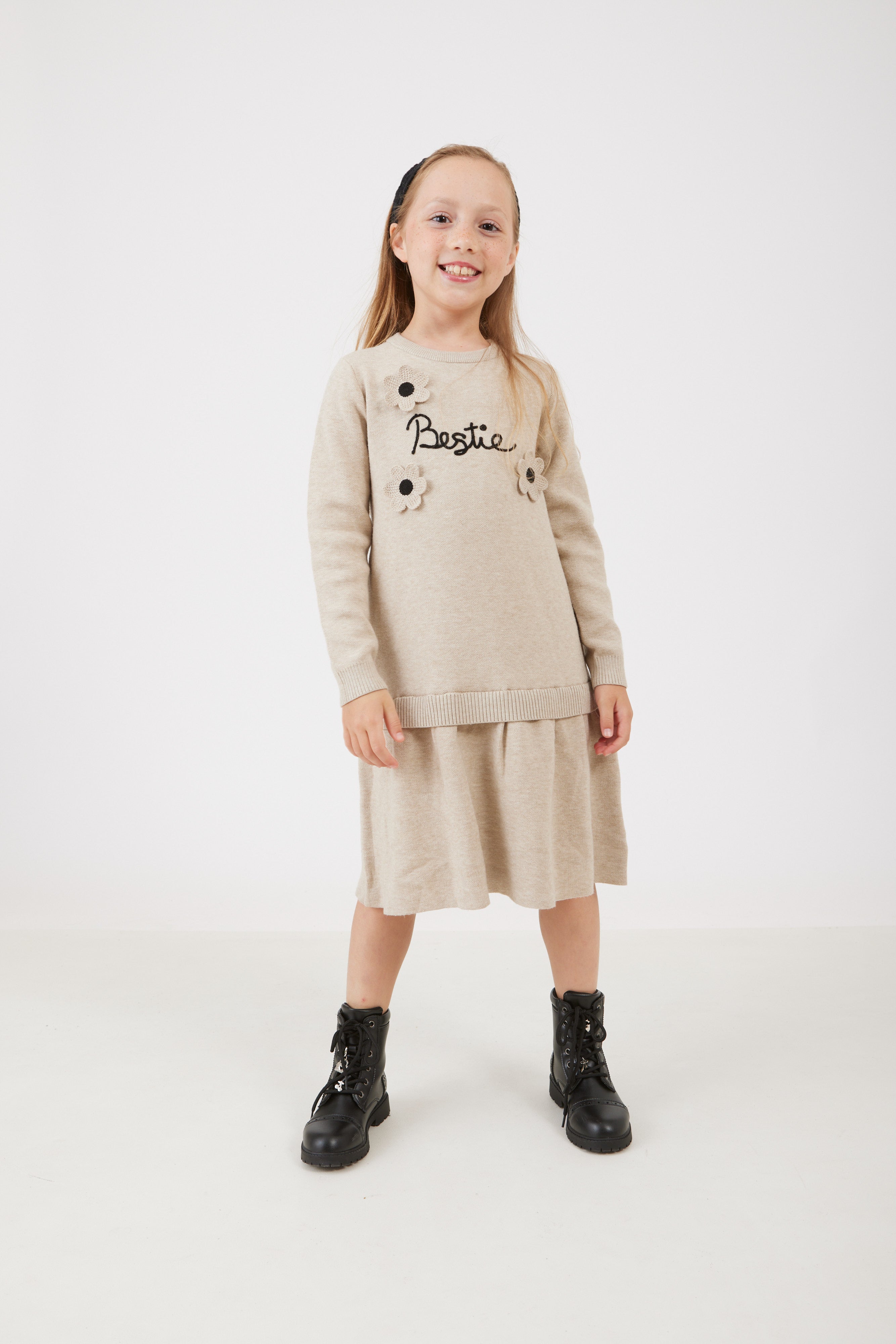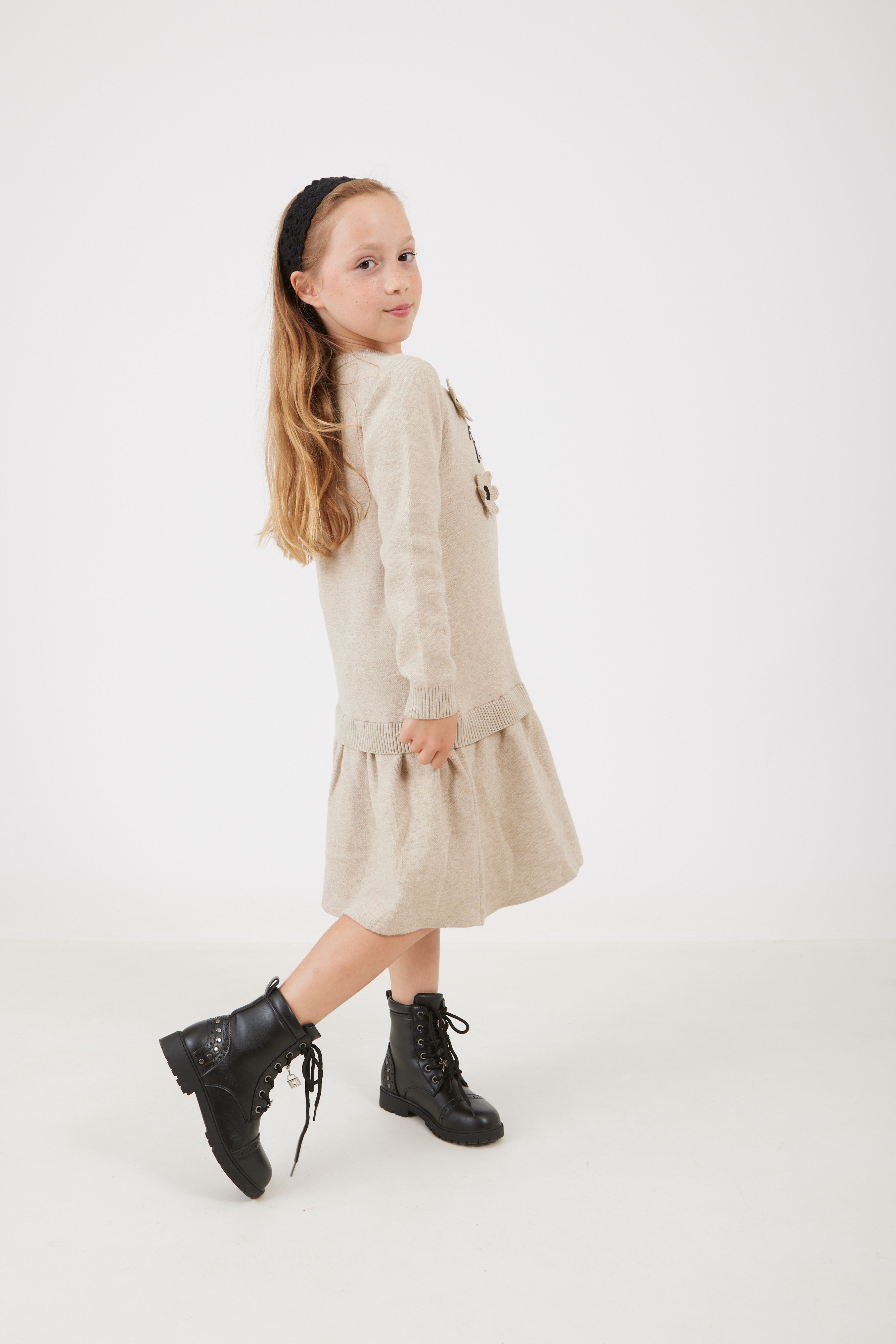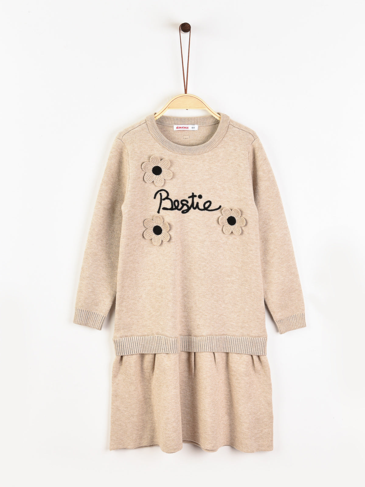 שמלת סריג עם פרחים - אבן