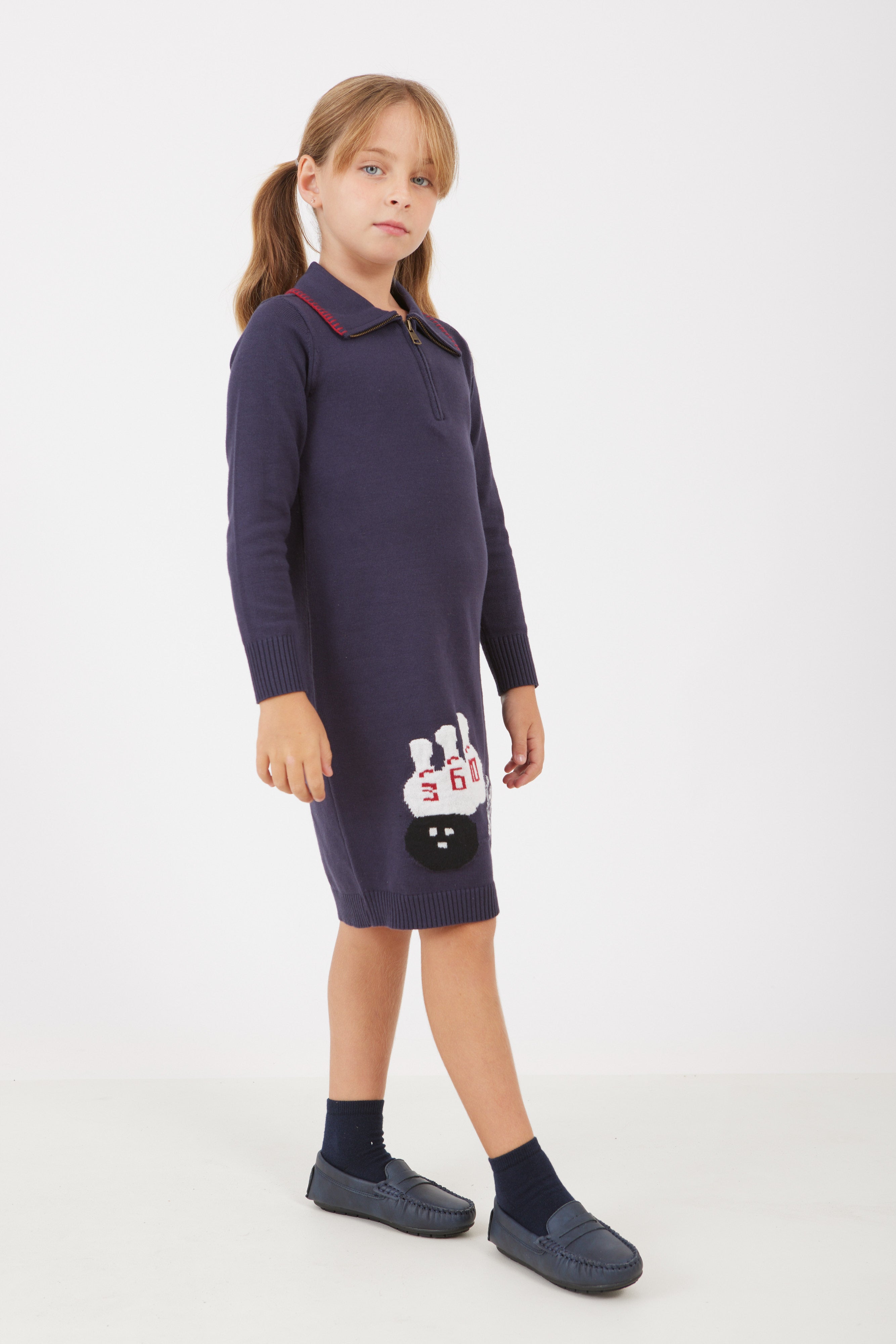 שמלת סריג עם רוכסן - נייבי