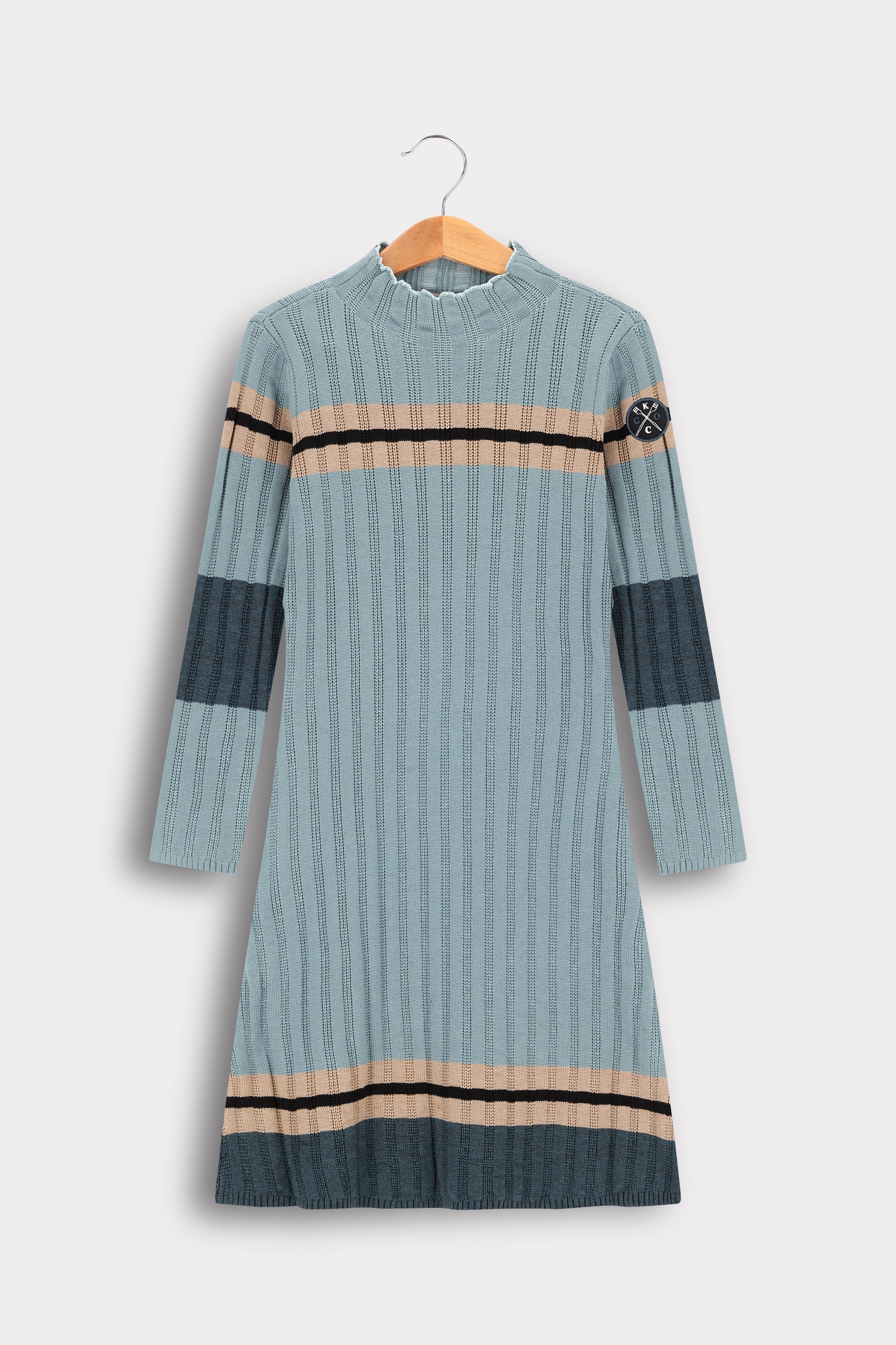שמלת סריג אופנתית ונוחה לבנות, בעיצוב ספורטיבי עם דוגמת פסים קלאסית.