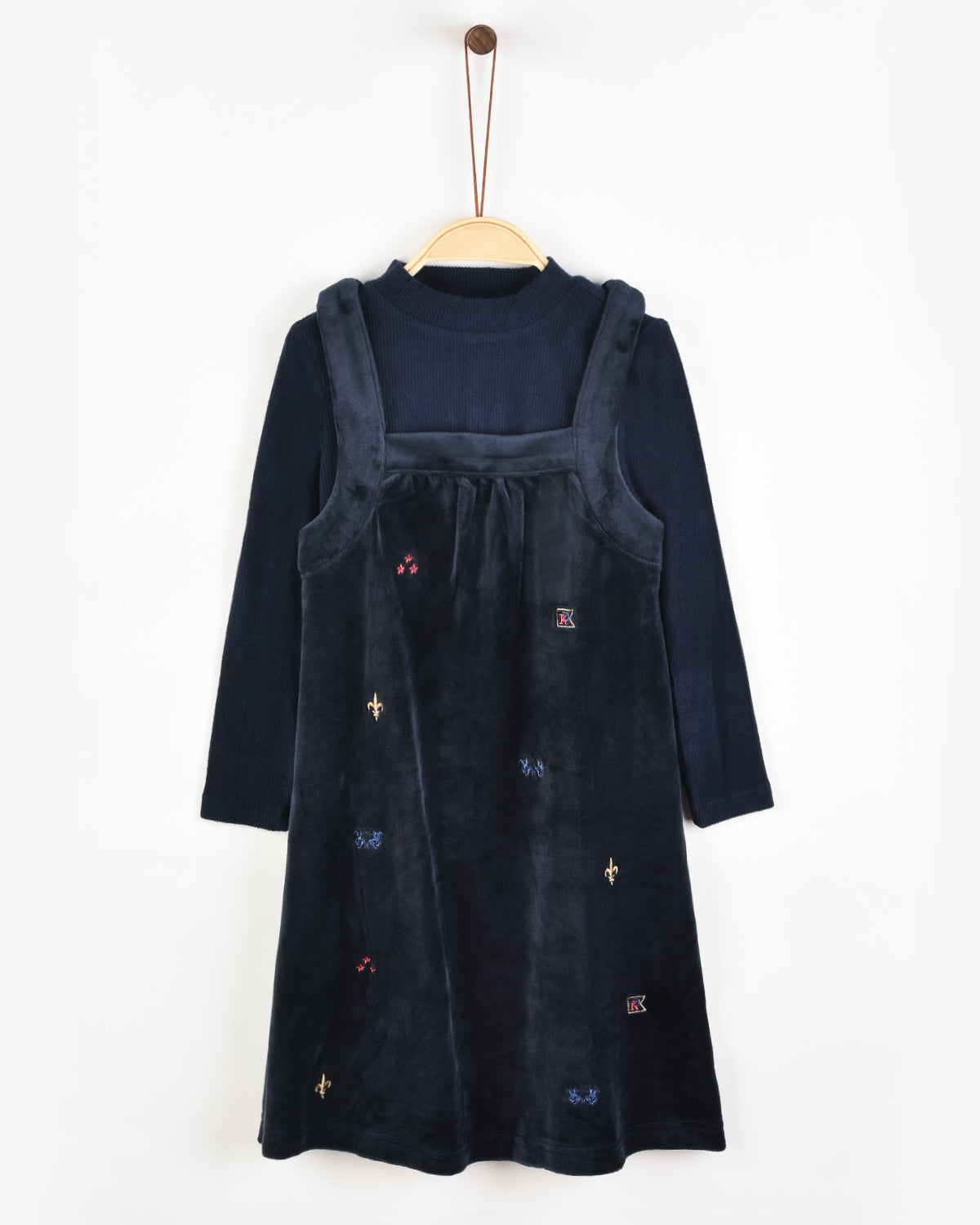 שמלת קטיפה משולבת - נייבי
