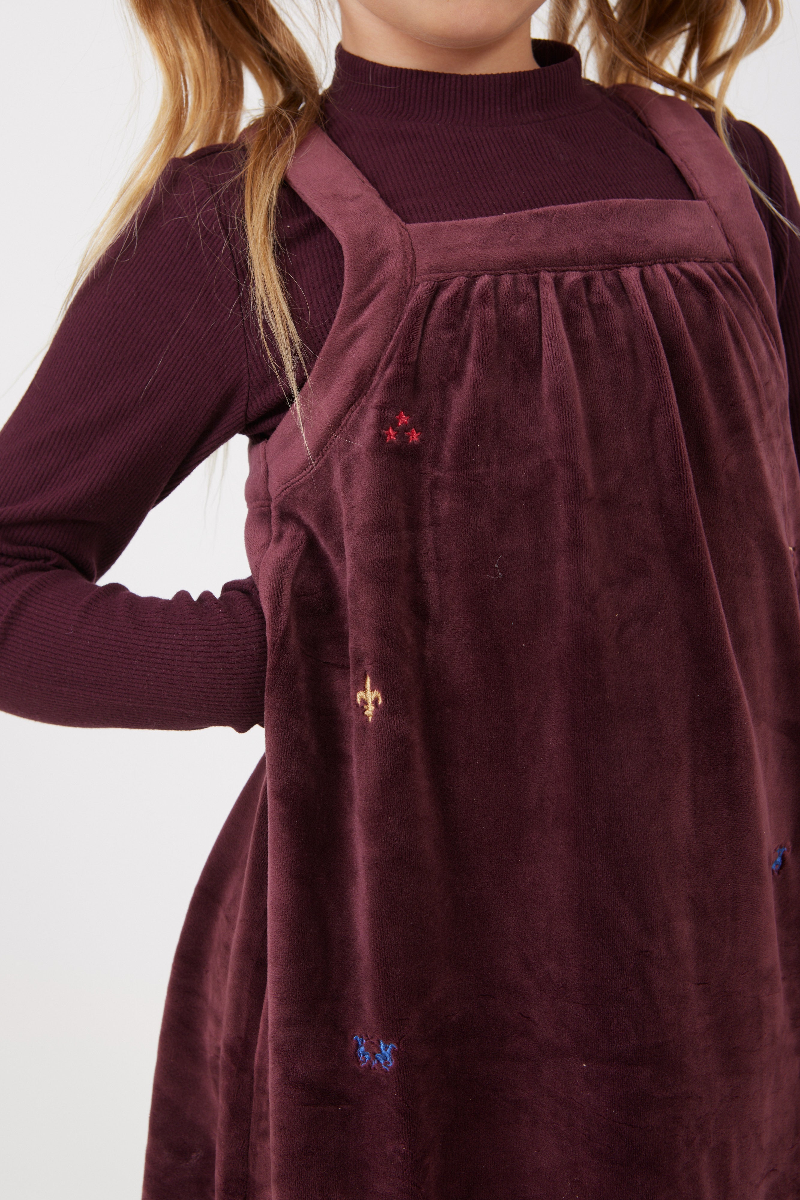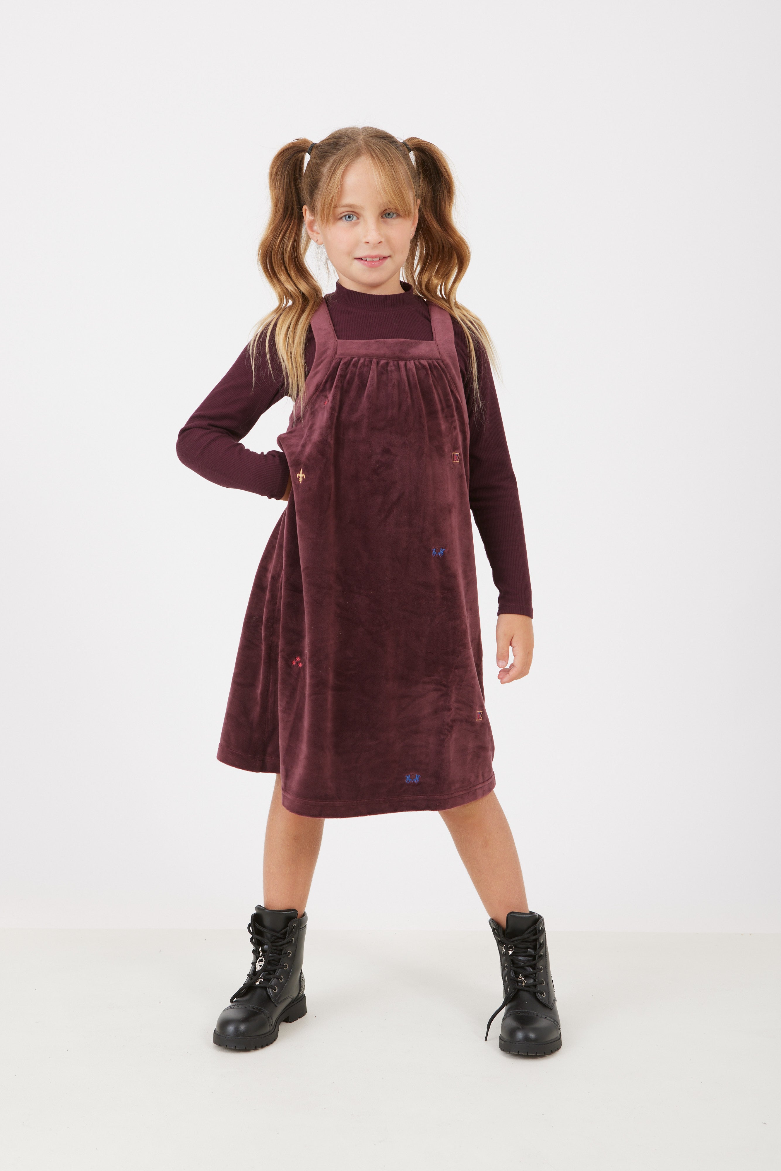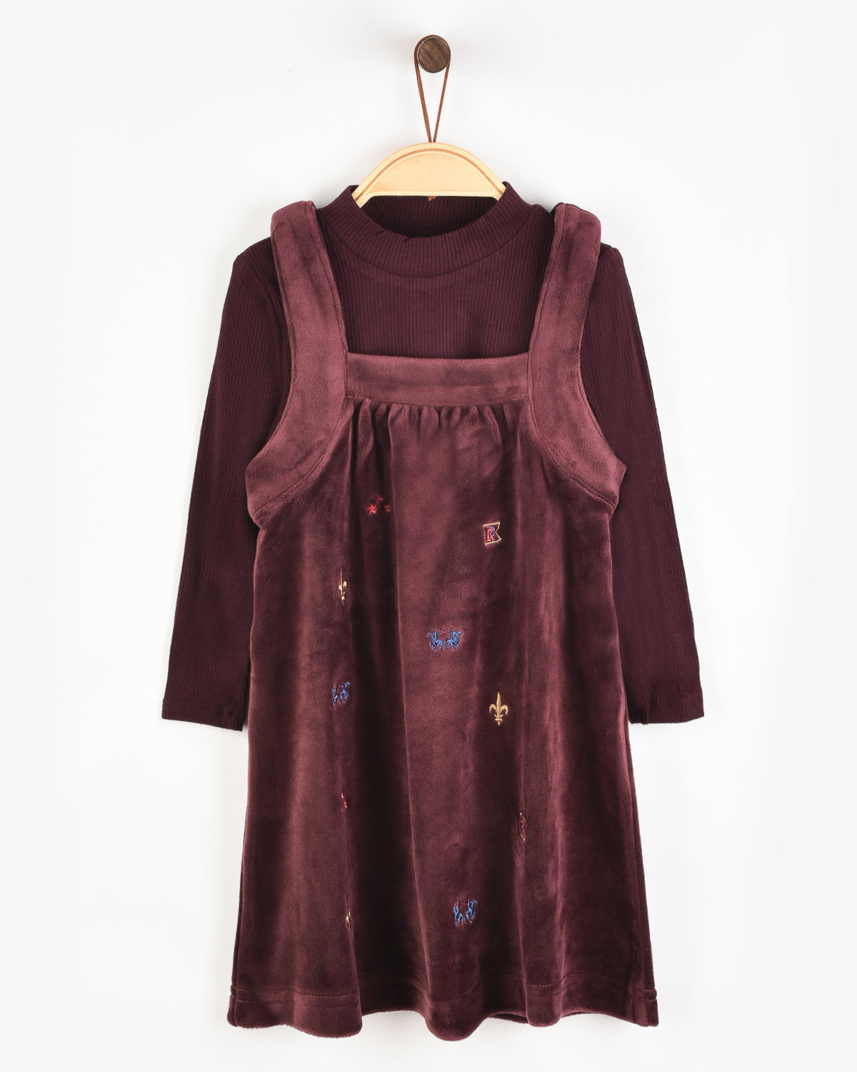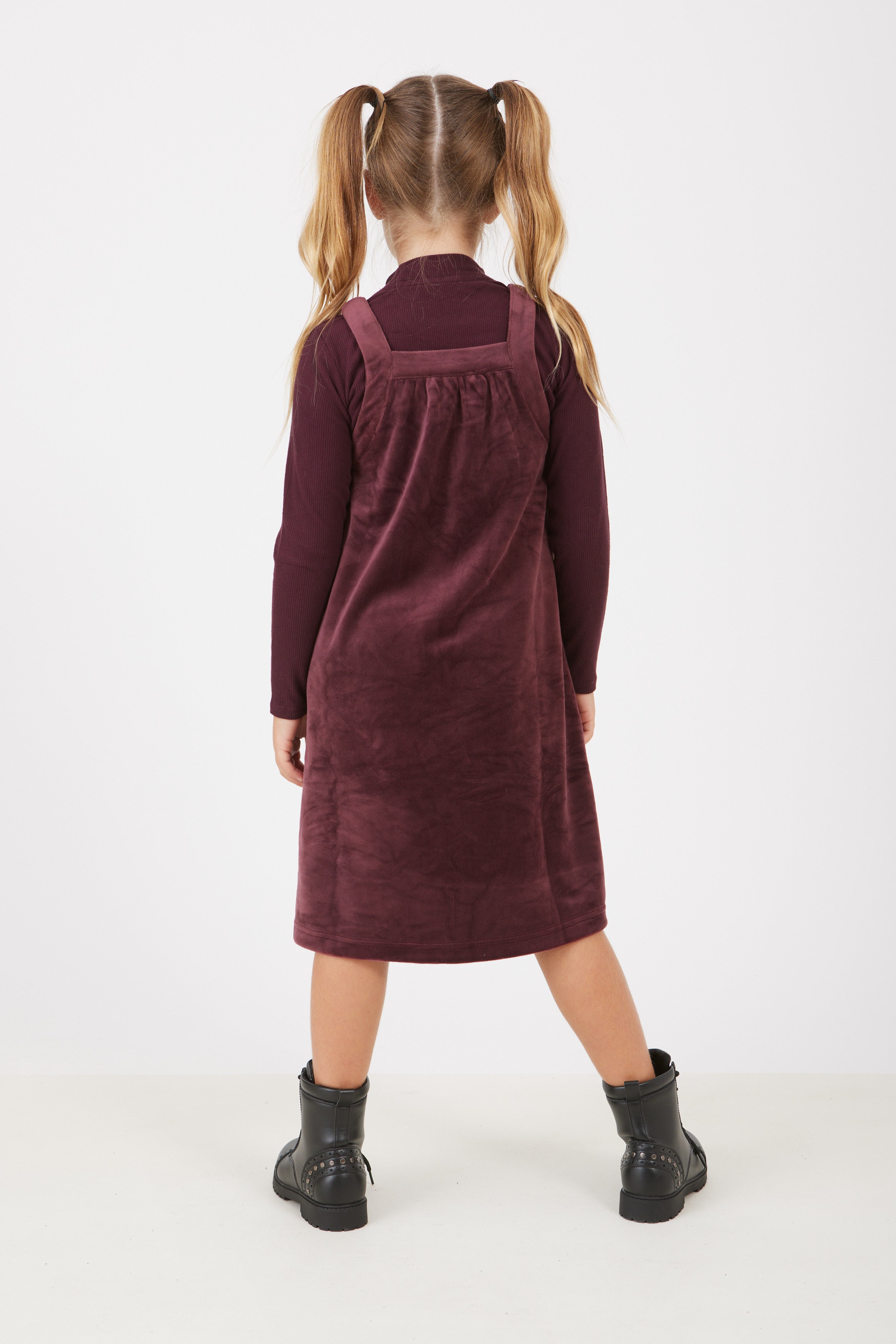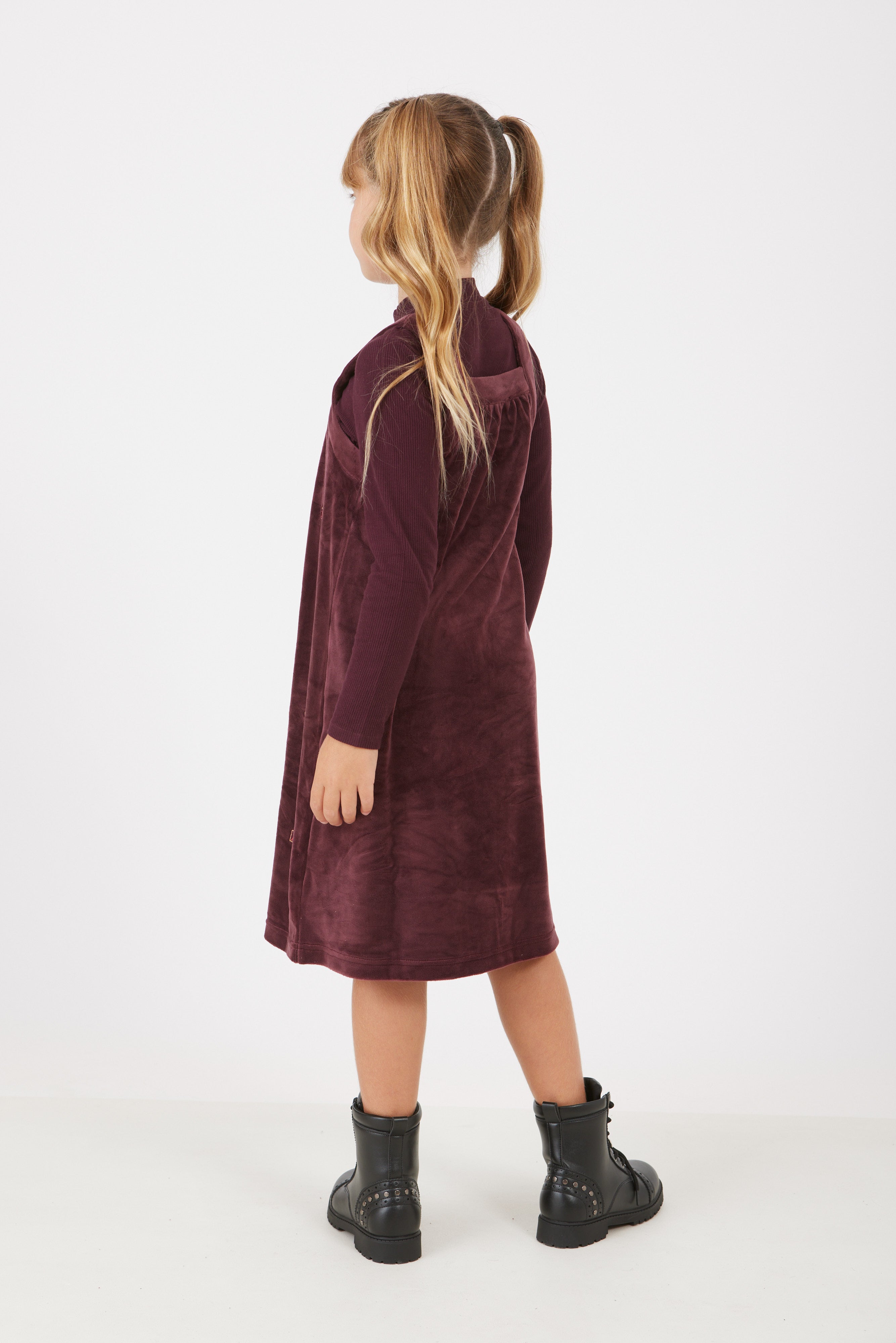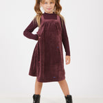 שמלת קטיפה משולבת - בורדו