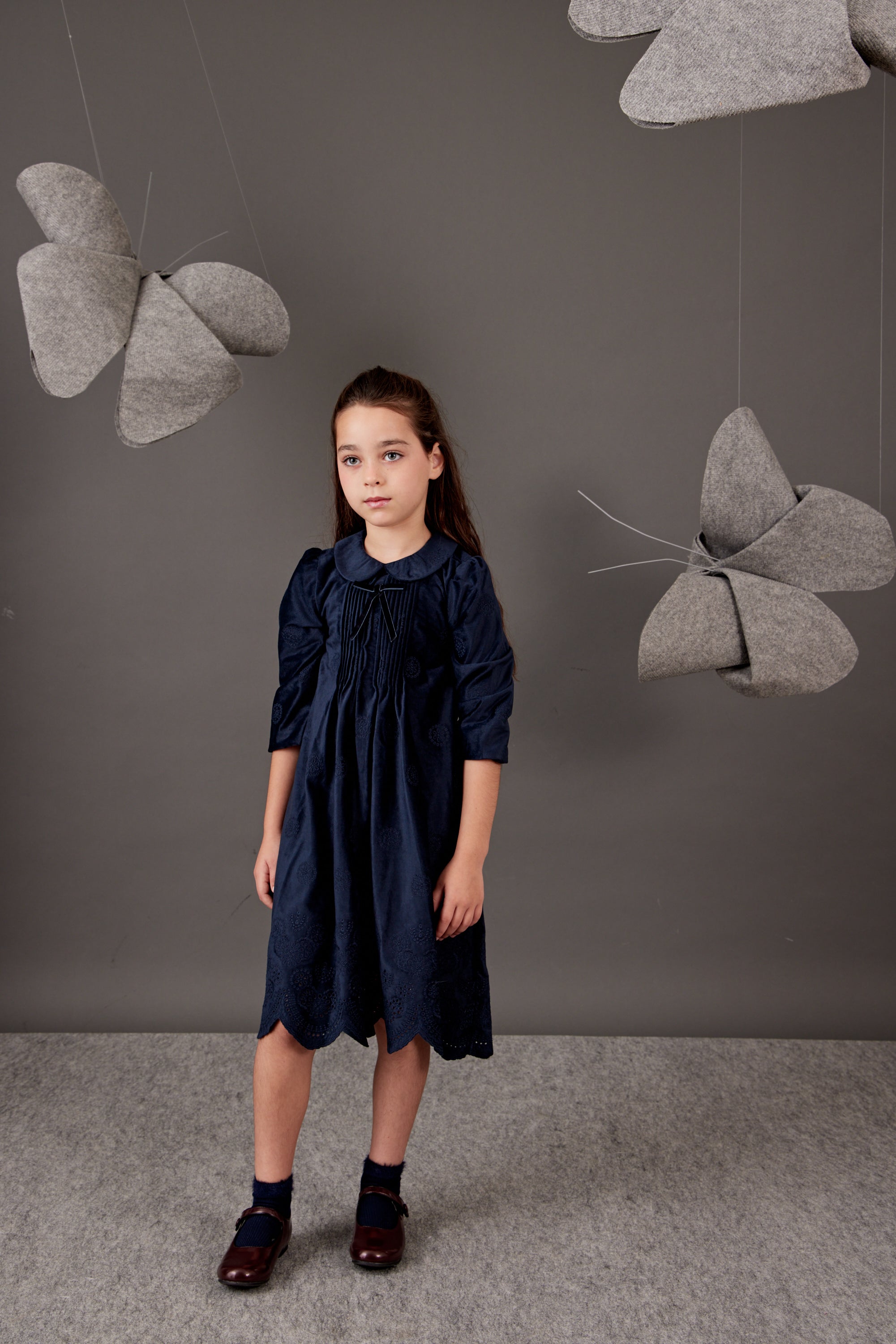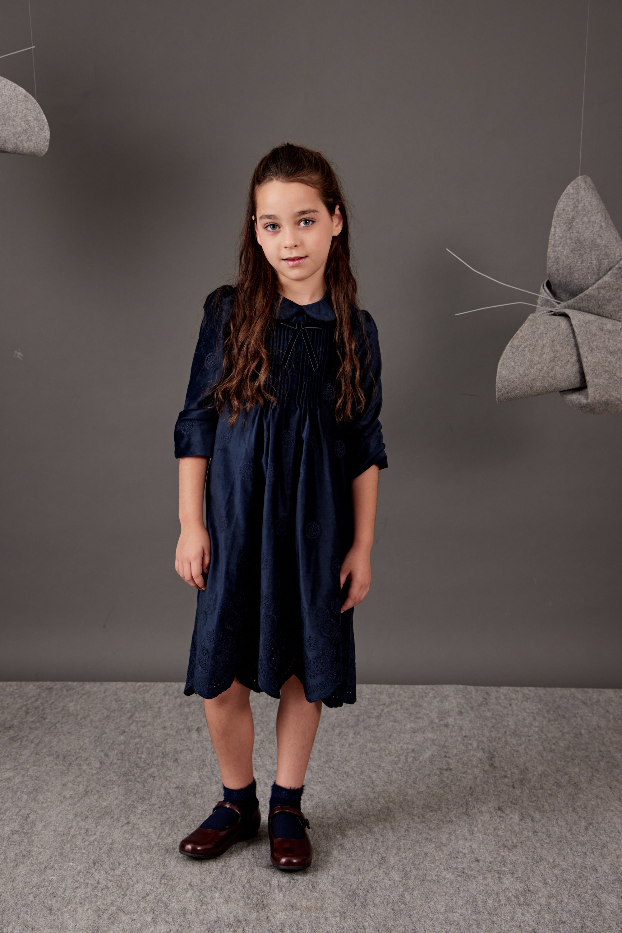 שמלת קטיפה עם צווארון - נייבי