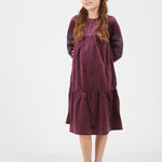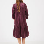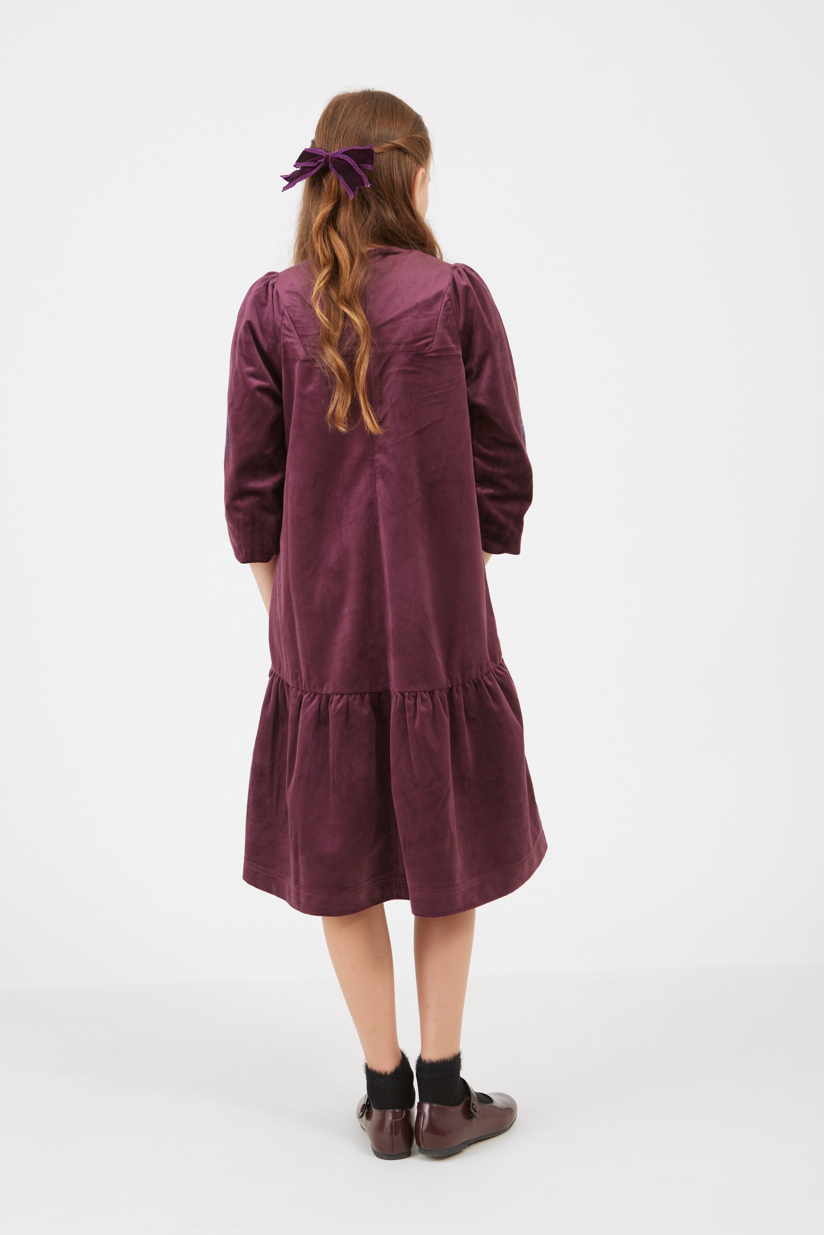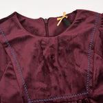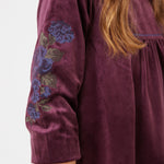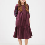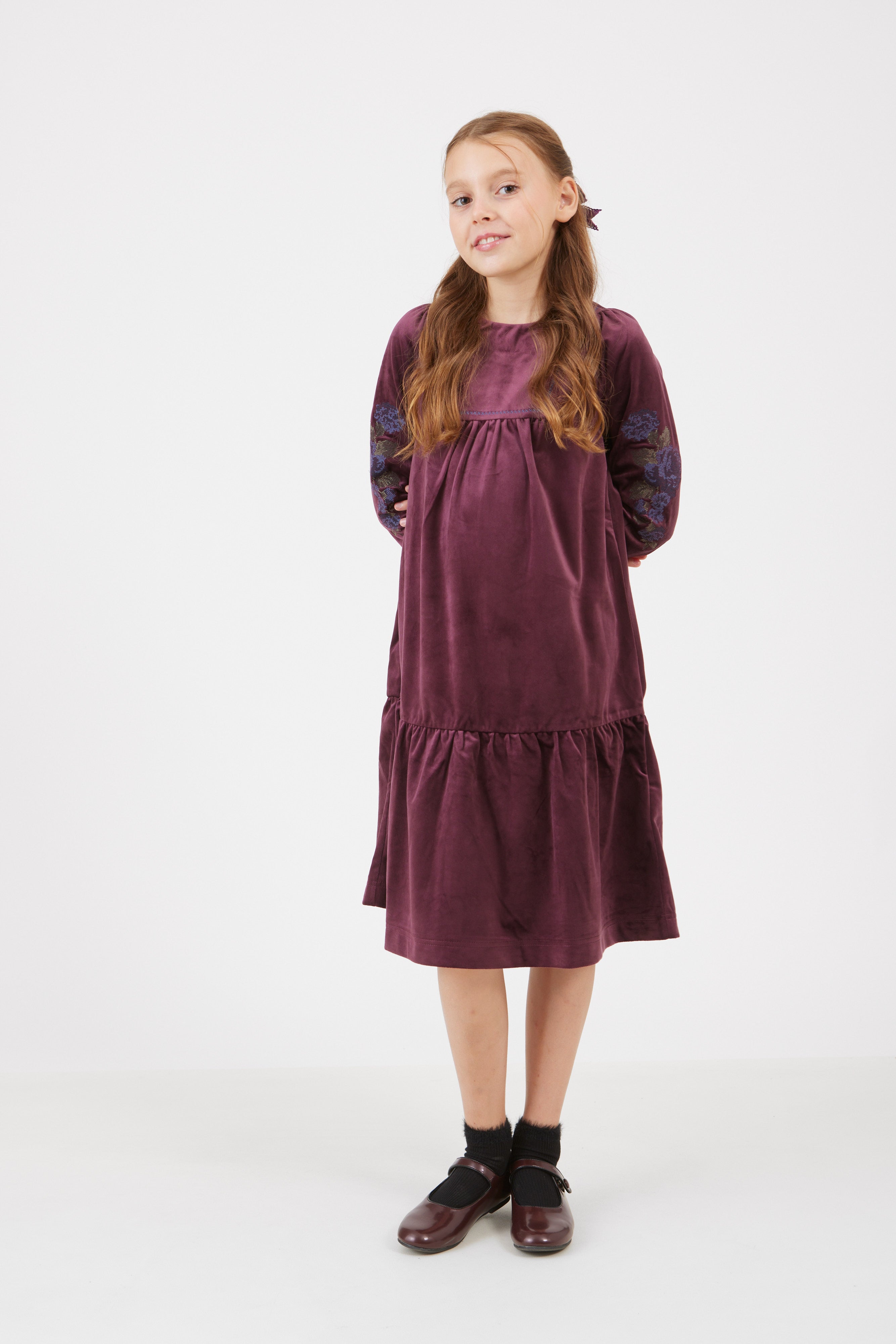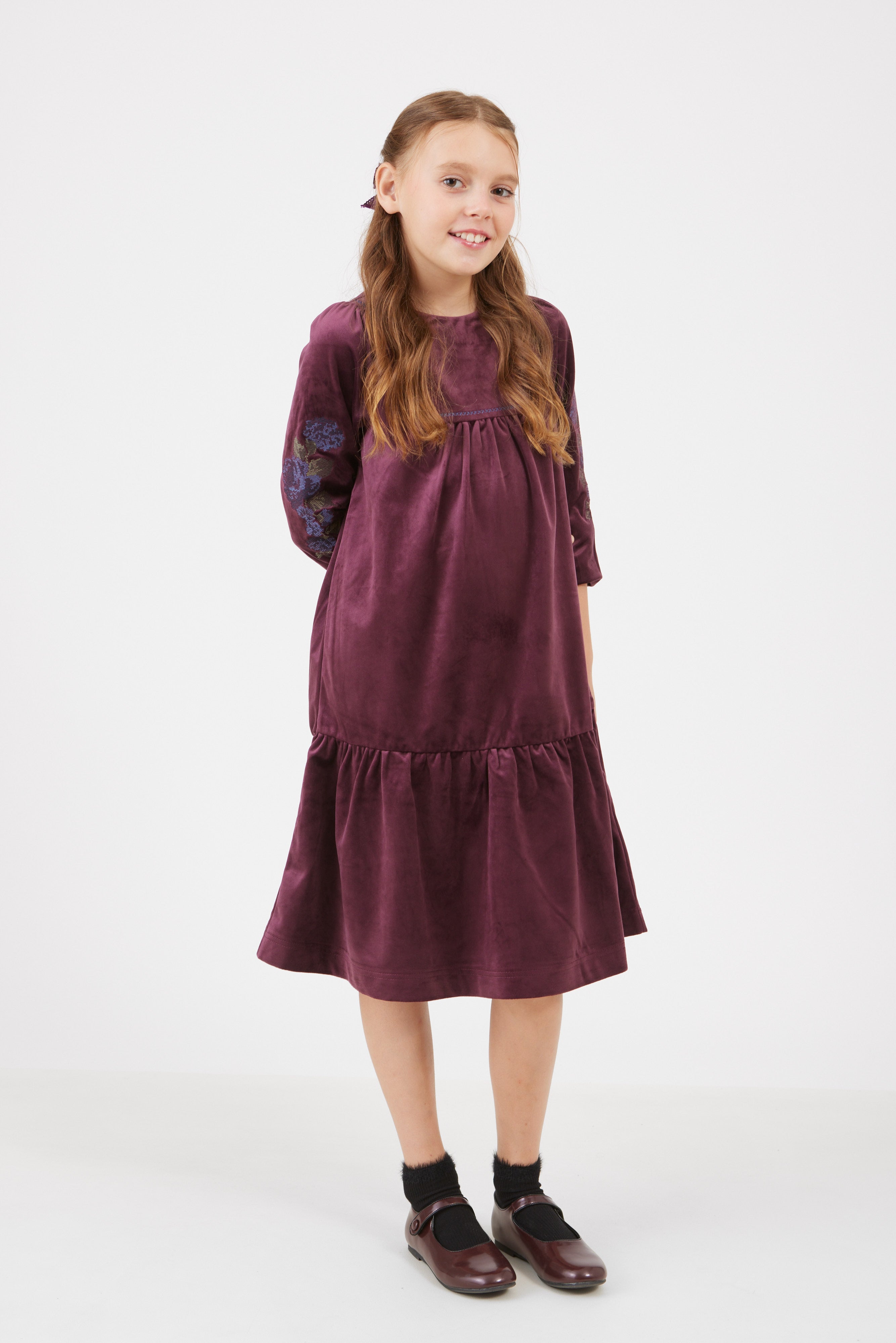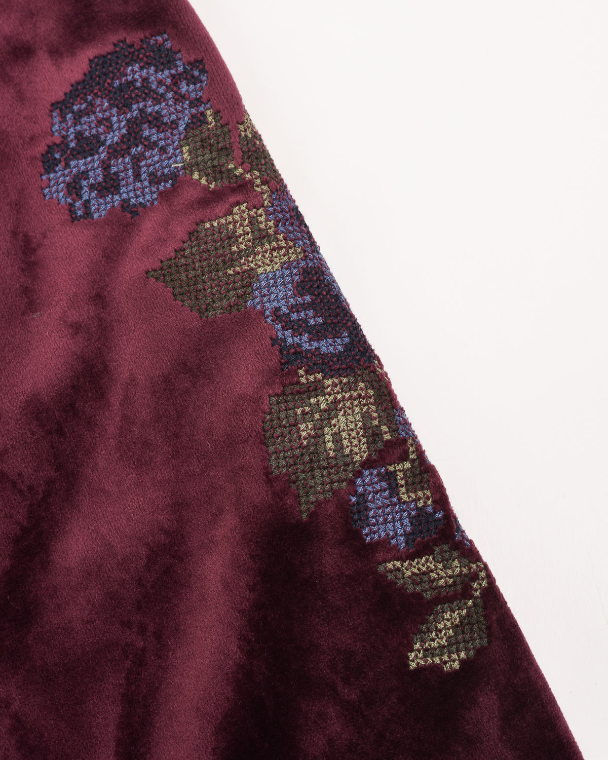 שמלת קטיפה עם רקמת פרחים - בורדו