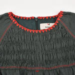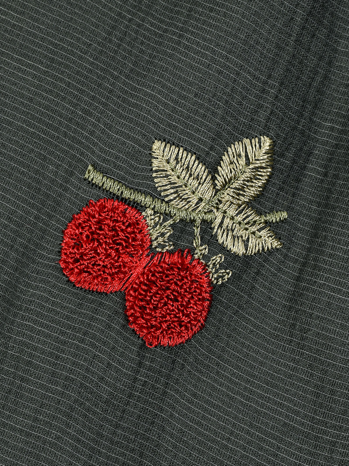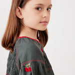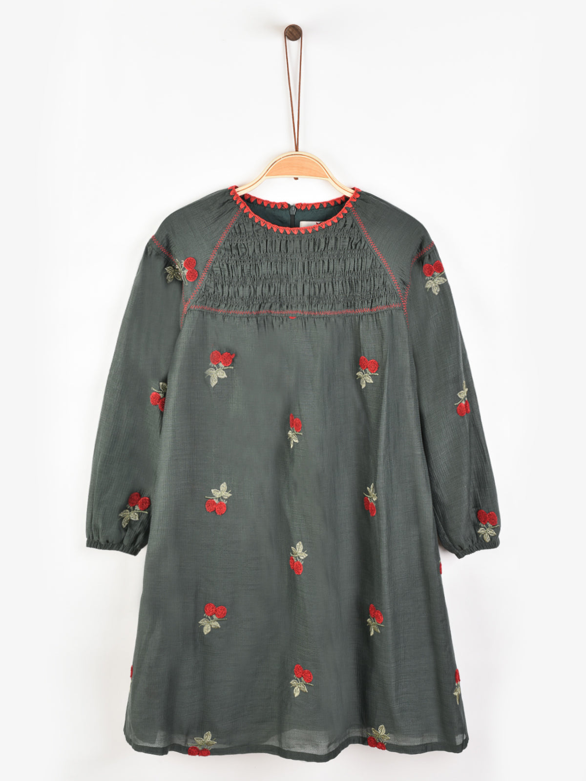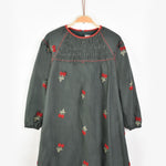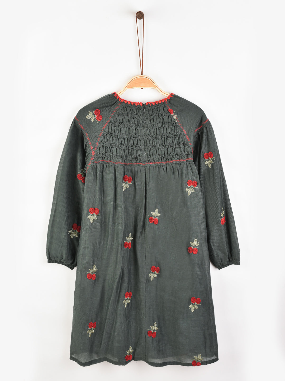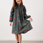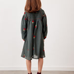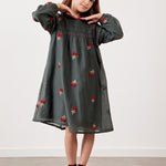 שמלה עם רקמת דובדבנים - ירוק