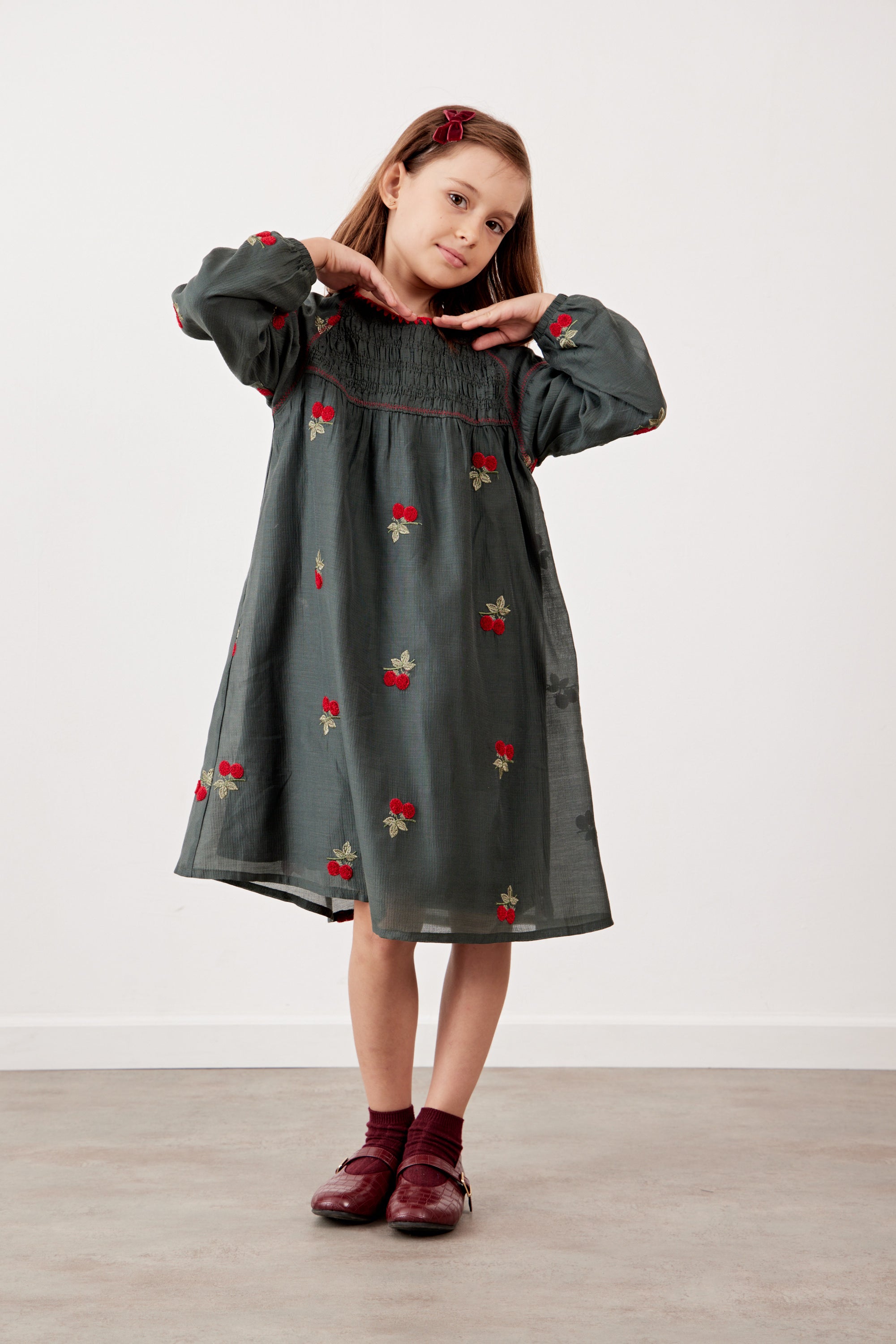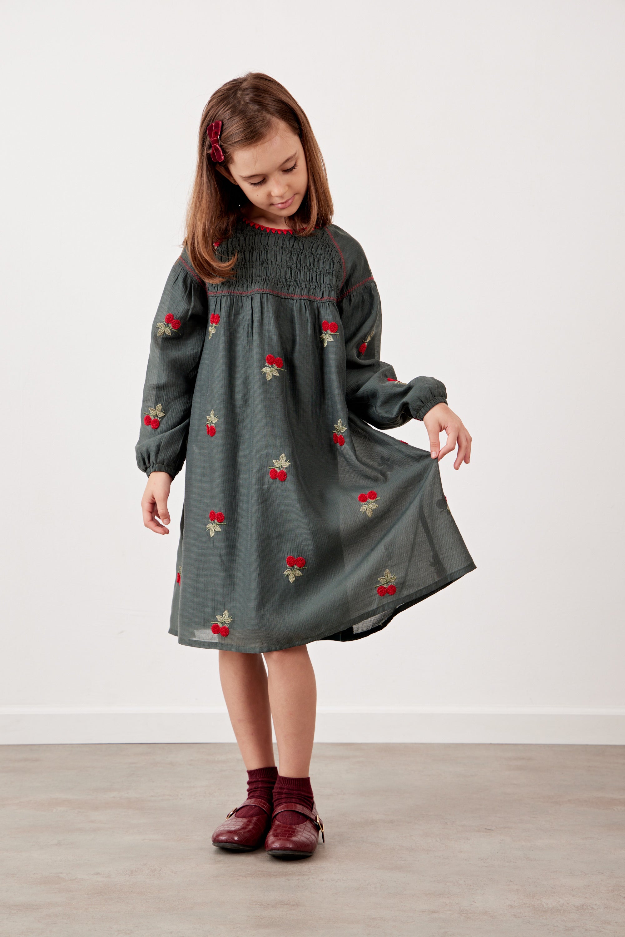 שמלה עם רקמת דובדבנים
