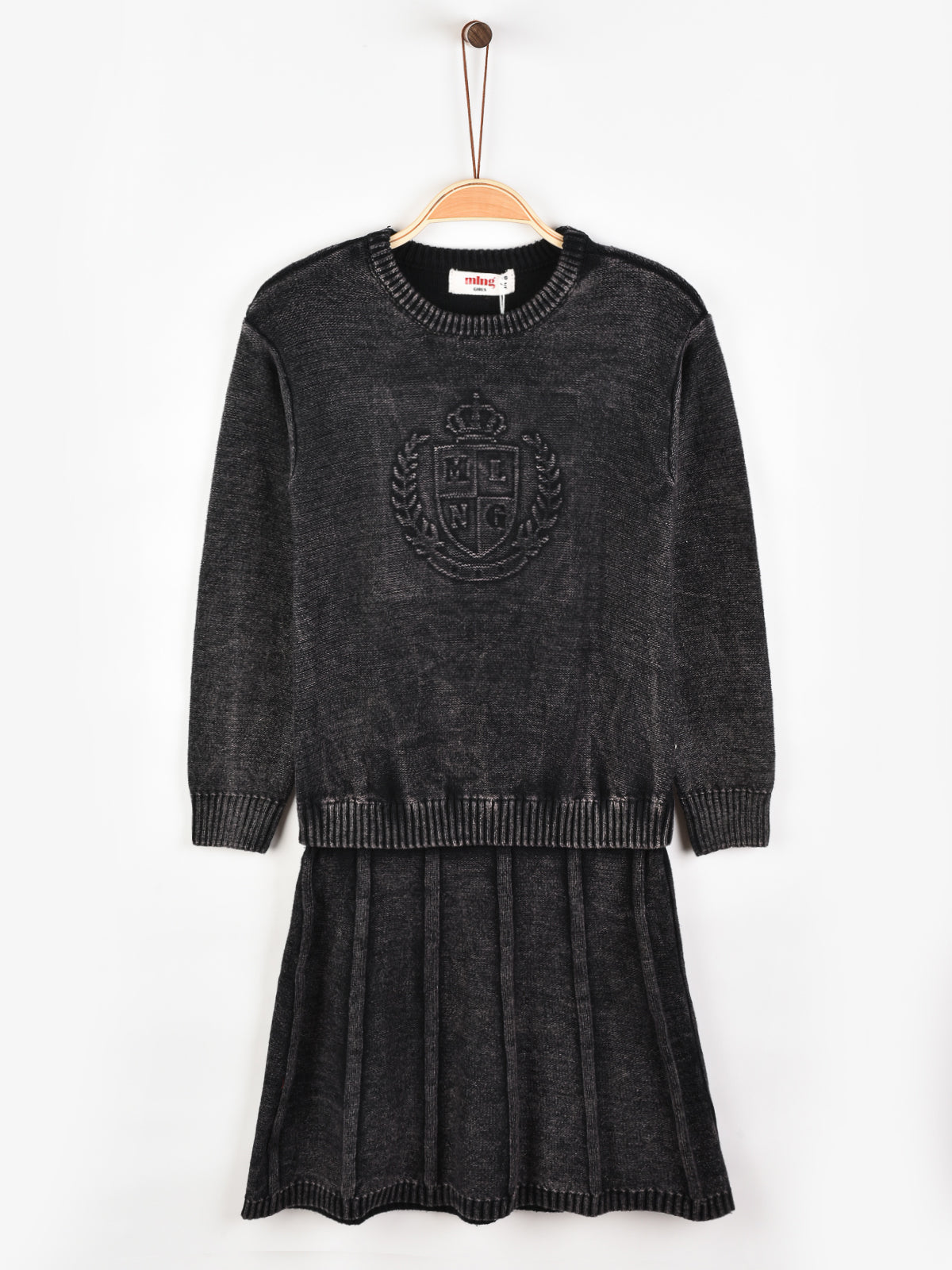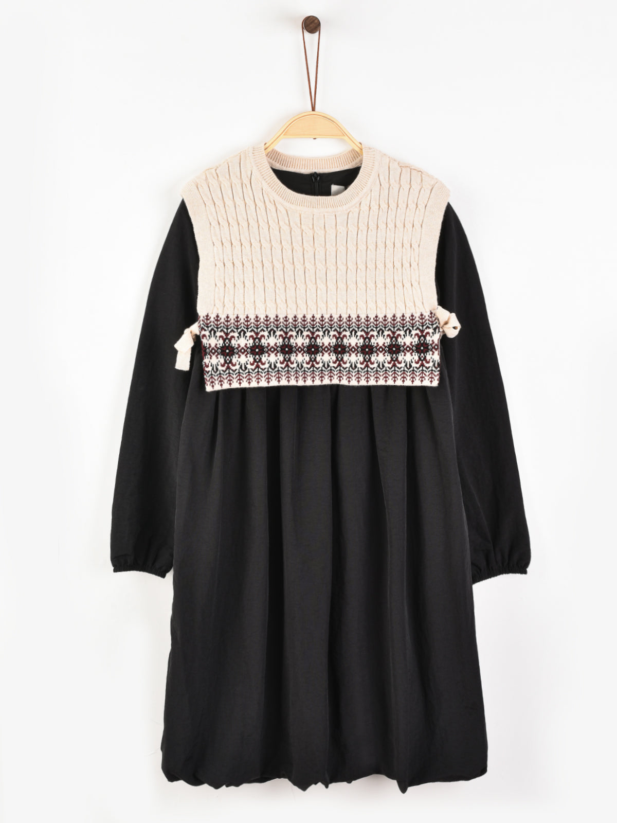 שמלת קטיפה בשילוב סרט פרחוני - שחור