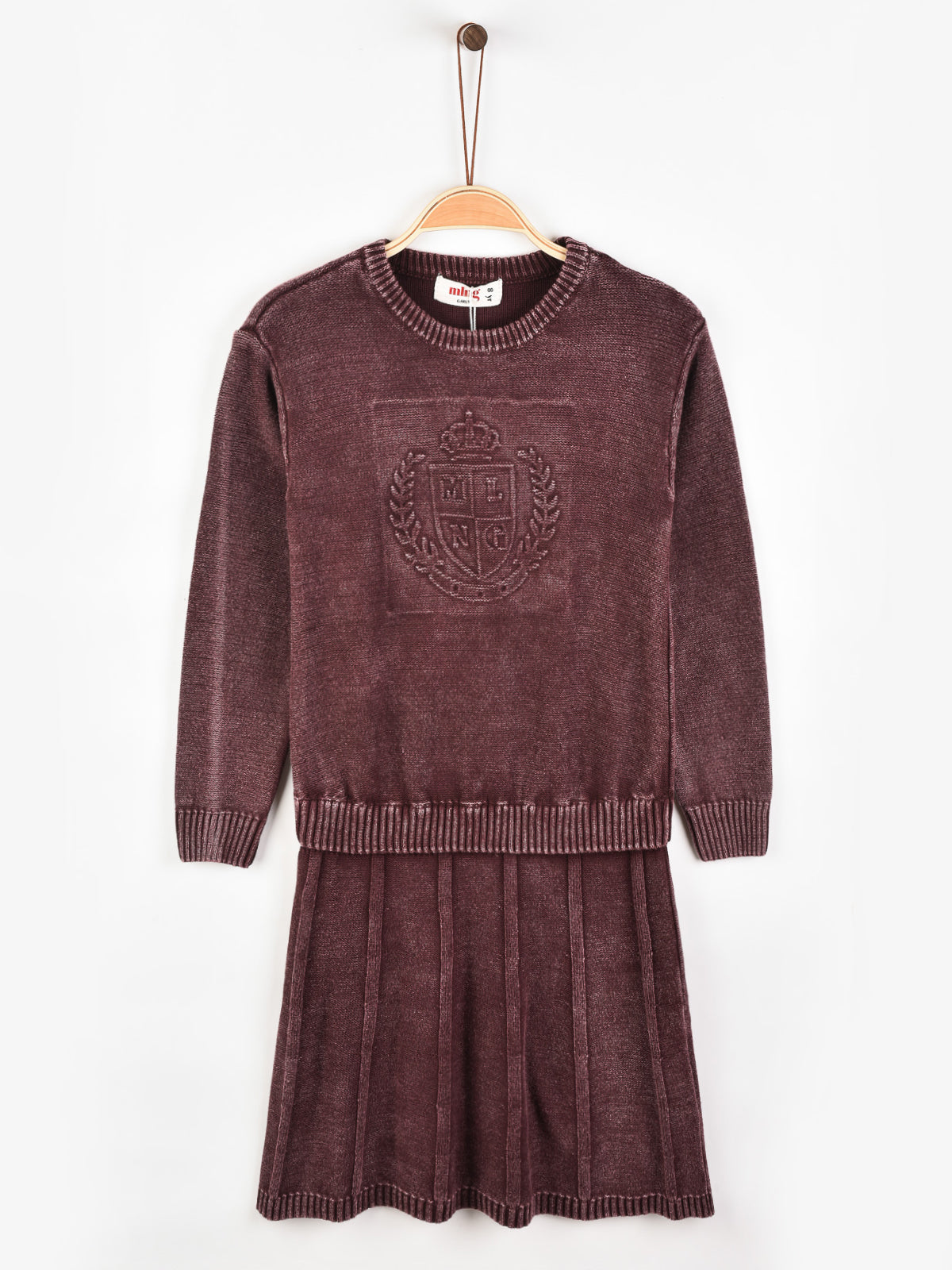 שמלת קטיפה בשילוב סרט פרחוני - זית