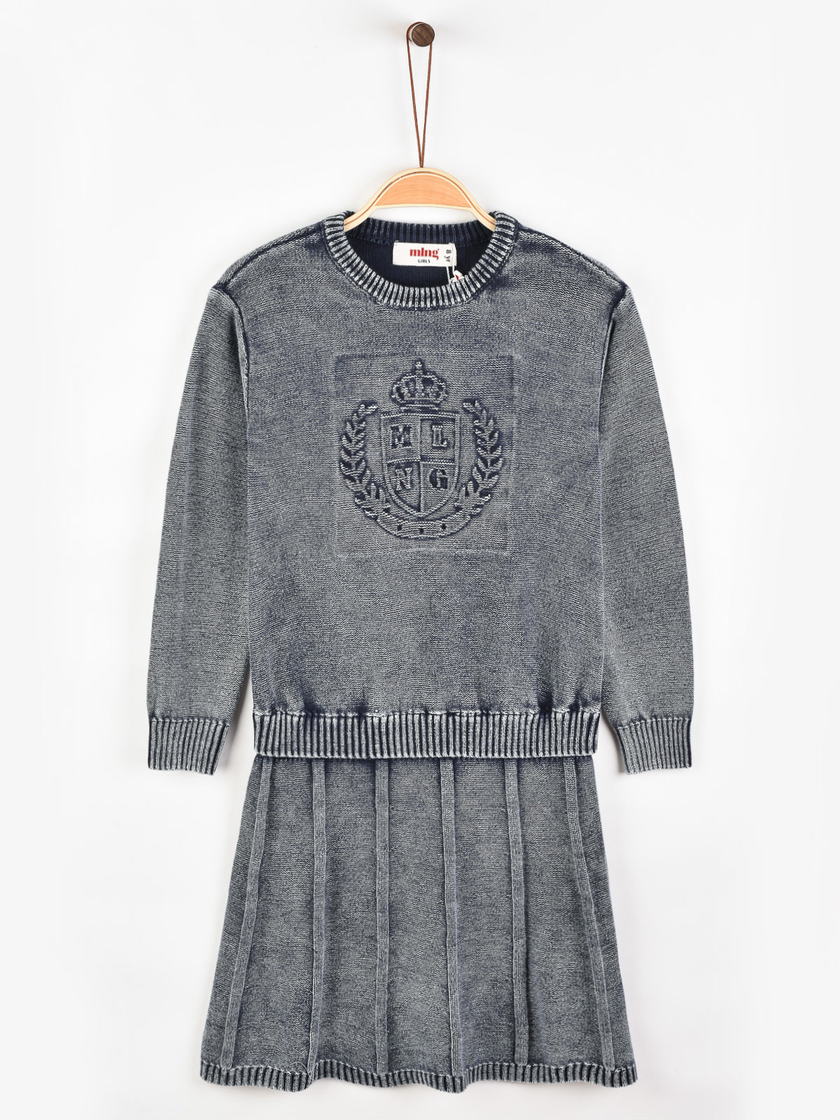 שמלת קטיפה בשילוב סרט פרחוני - ירוק