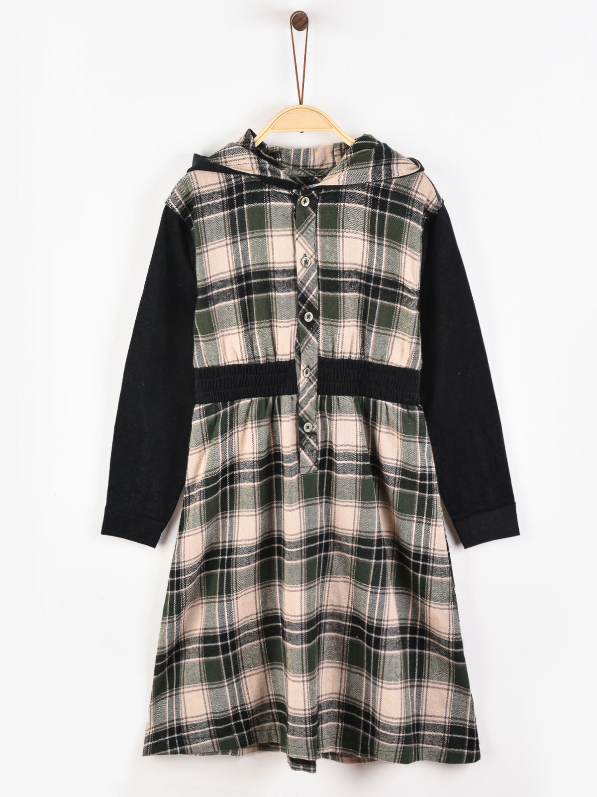 שמלת קטיפה עם רקמת פרחים - ירוק
