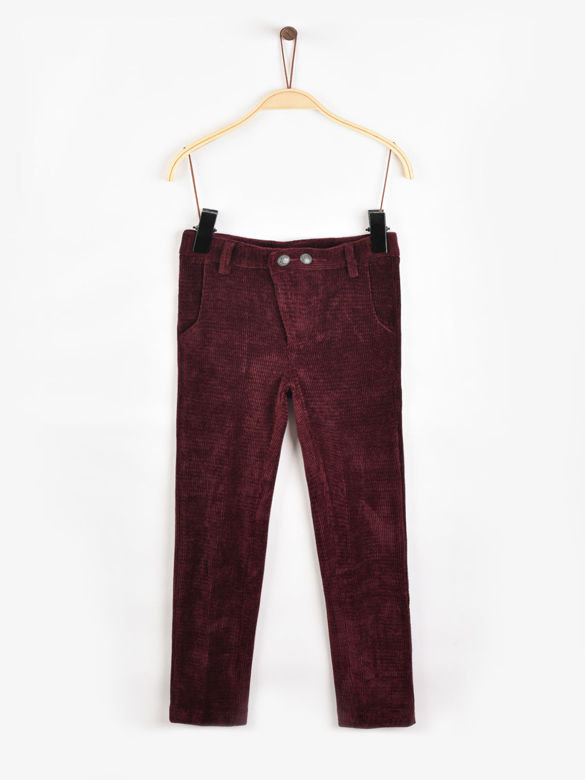 מכנסי קטיפה סגירת כפתורים - בורדו