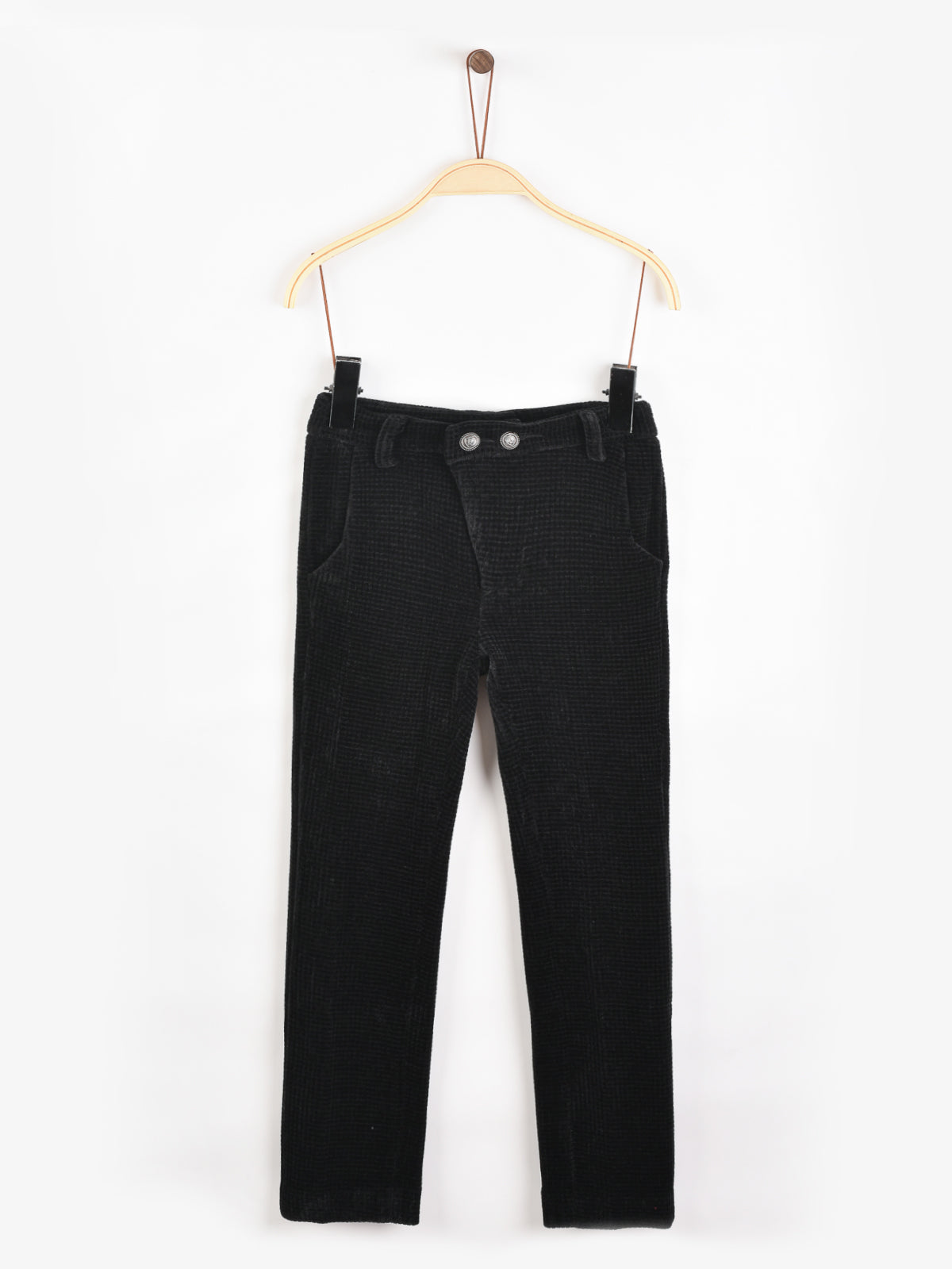 מכנסי קטיפה סגירת כפתורים - שחור