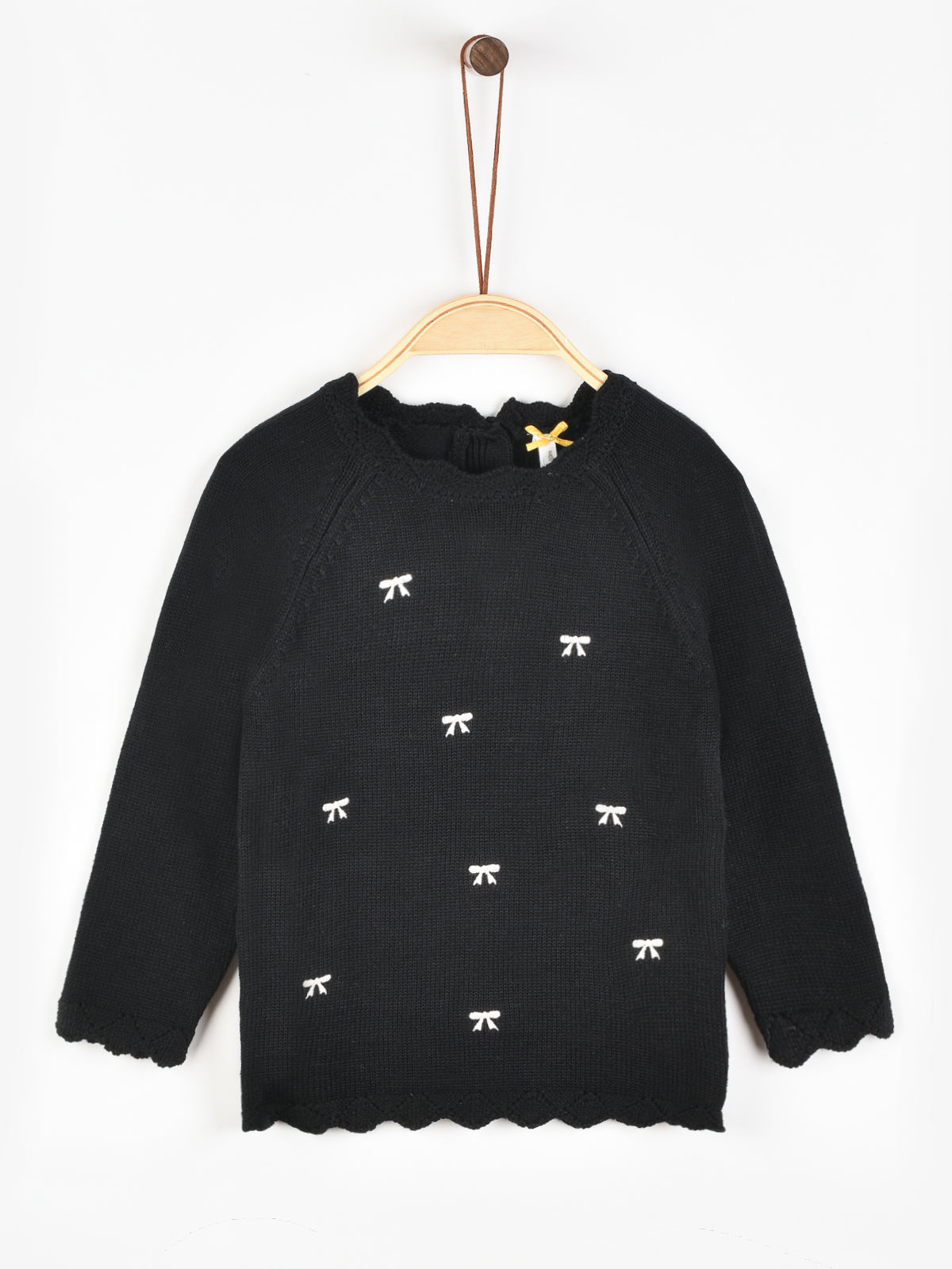 סוודר פפיונים במראה תחרה - שחור/לבן