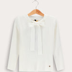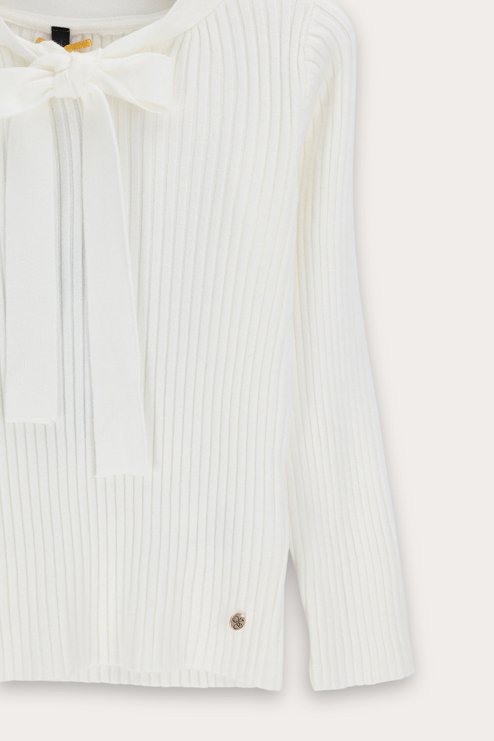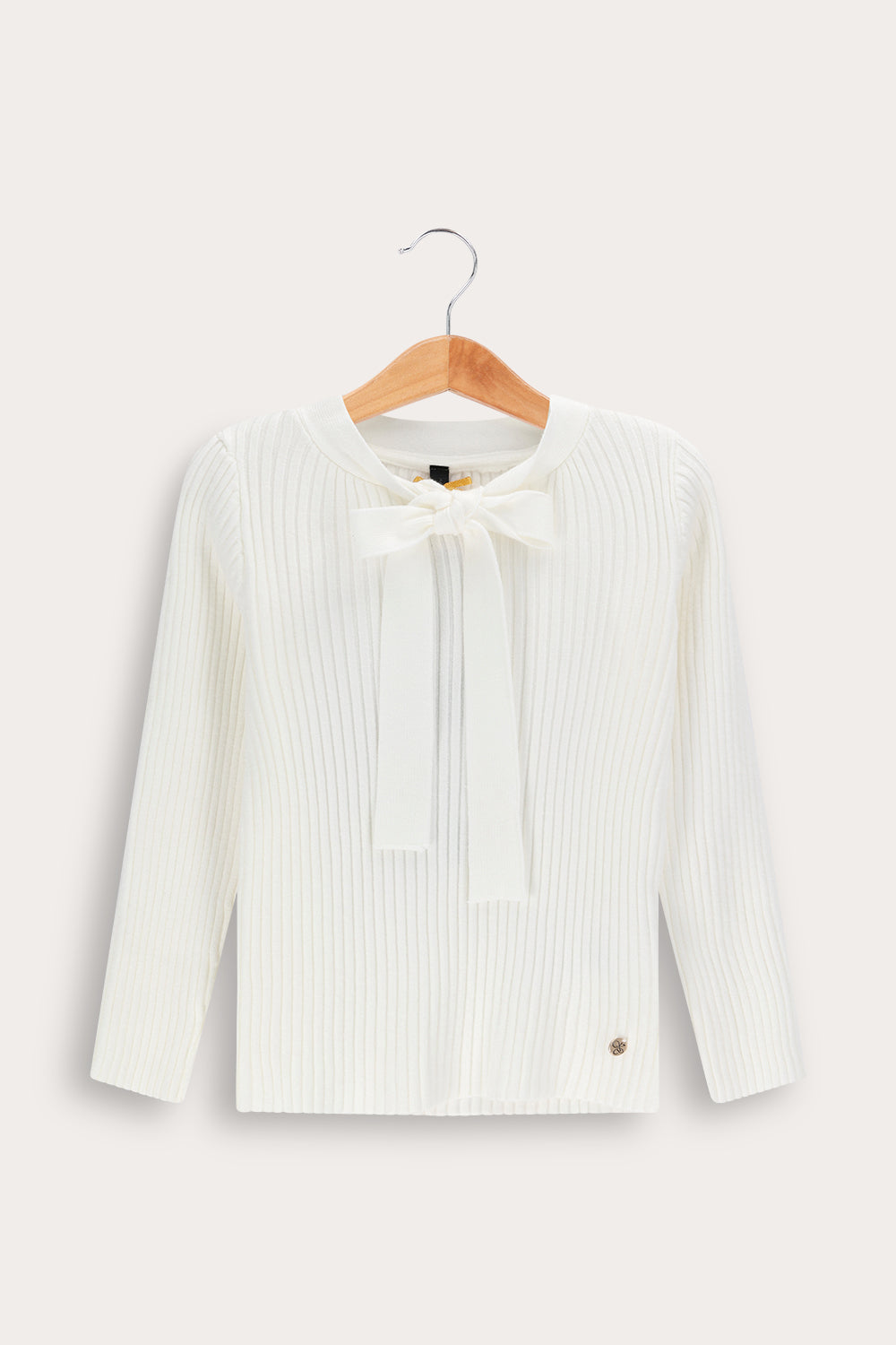 סוודר ריב לבנות בשילוב סרט קשירה קדמי אלגנטי.