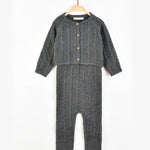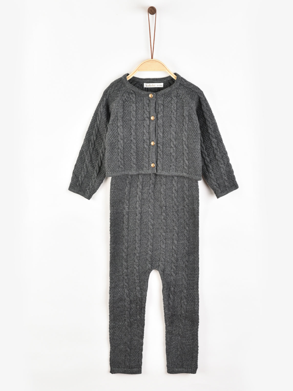 סט אוברול וקרדיגן לתינוק, בסריגת צמות ייחודית.
