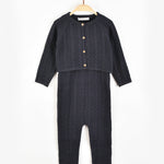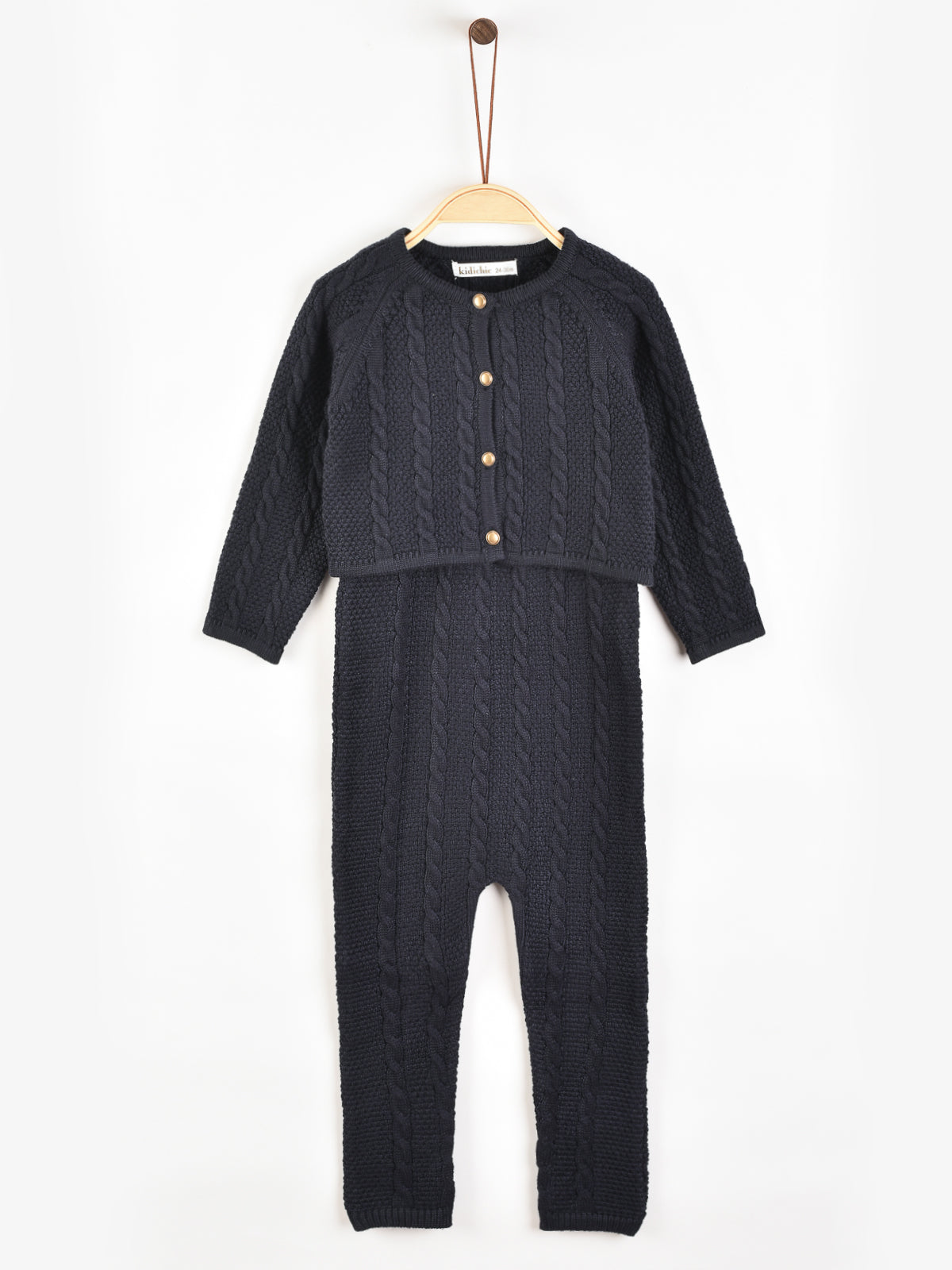 סט אוברול וקרדיגן לתינוק, בסריגת צמות ייחודית.