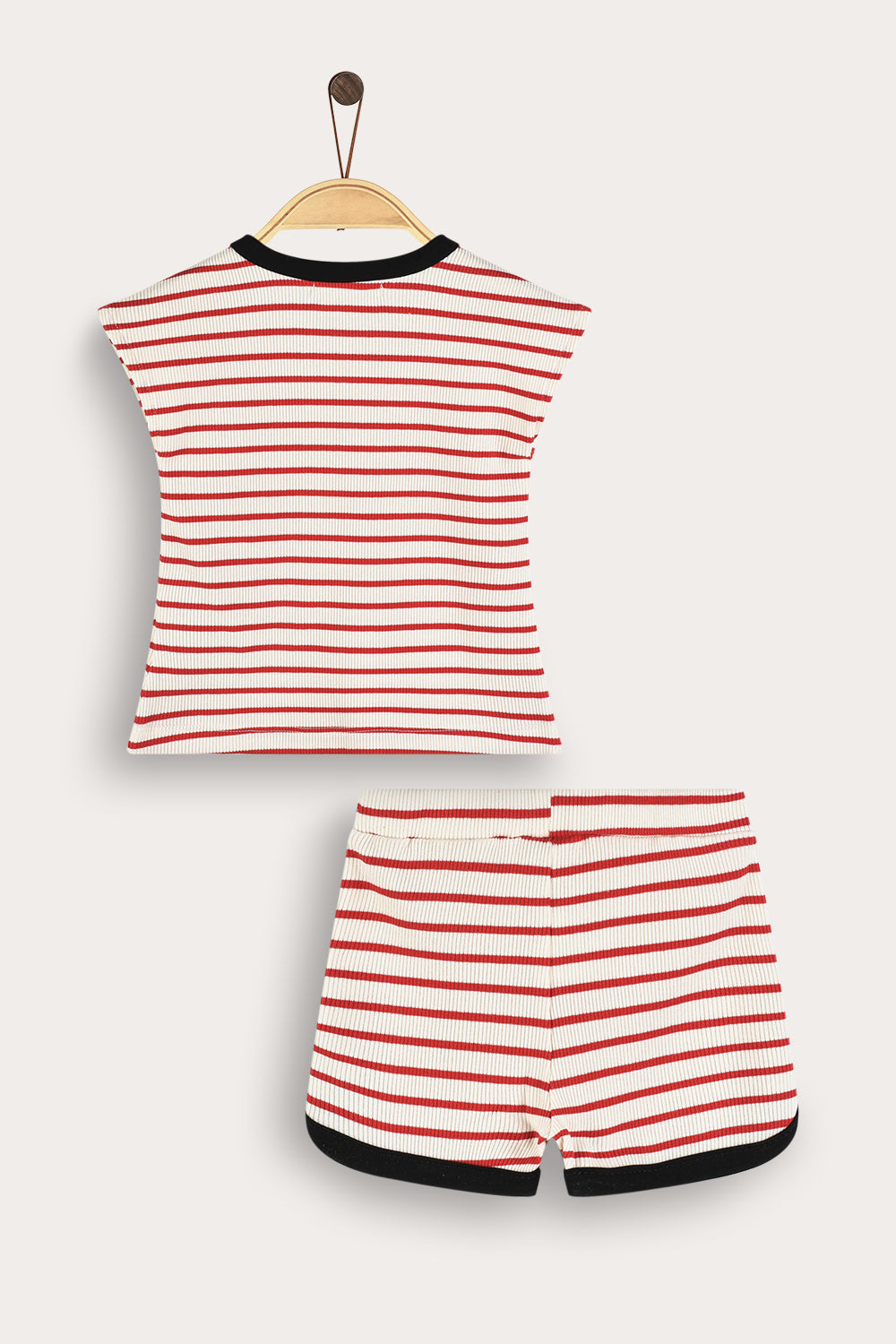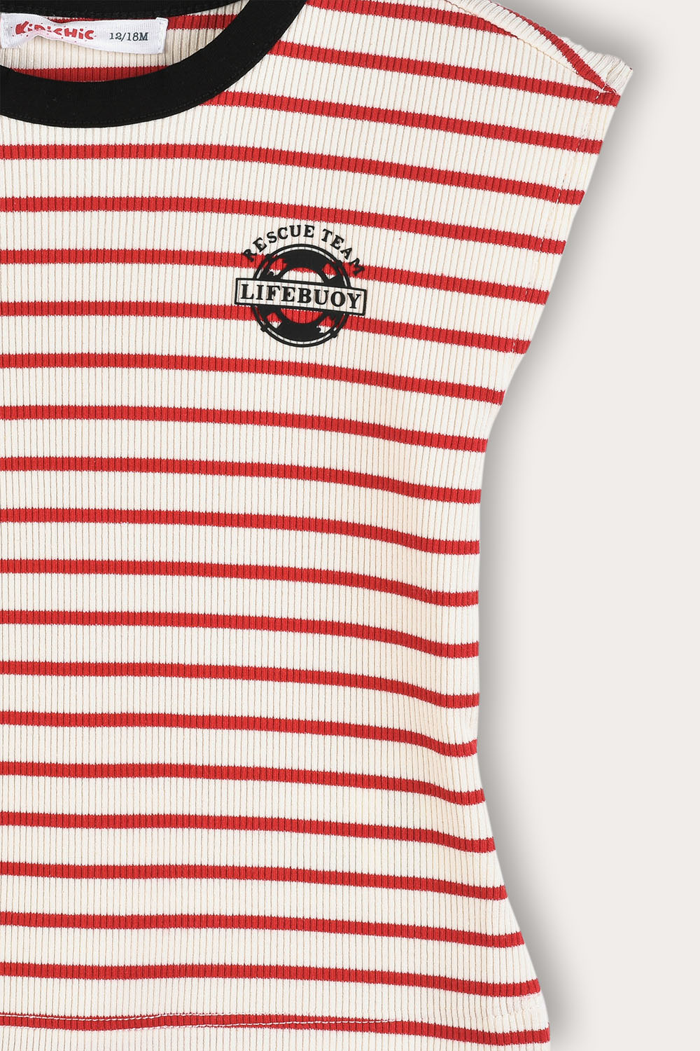 סט שני חלקים אופנתי לתינוקות, בעיצוב יוניסקס המתאים לבנים ולבנות כאחד. עשוי מבד תערובת כותנה איכותי ונושם - המתאים ללבישה יום יומית. החלק העליון חולצה ללא שרוולים עם פתח צוואר עגול והדפס סמל צדדי. החלק התחתון מכנסיים קצרים תואמים - להופעה נקיה ומסודרת. שני אזורי צבע מודגשים - מוסיפים סטייל ייחודי לטיולים עם הקטנטנים שלכם.