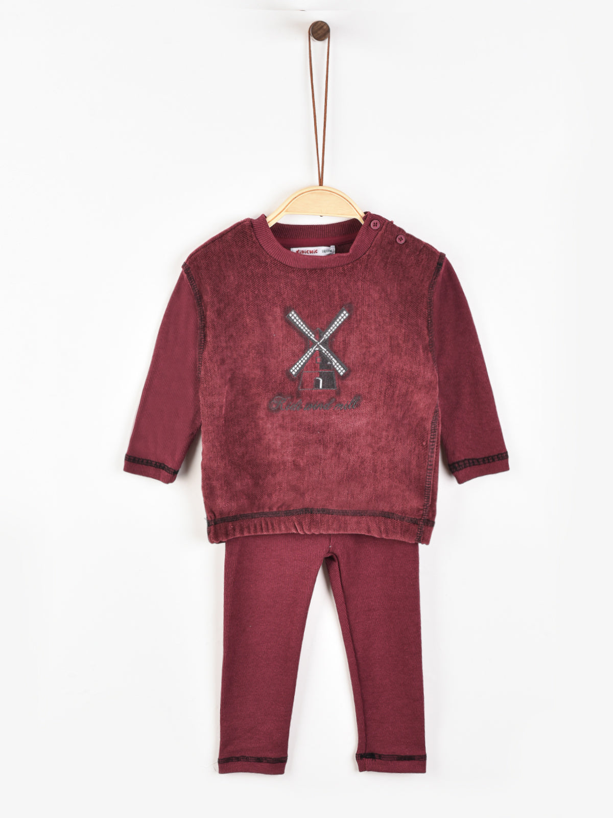 סט שני חלקים לתינוקות, בשילוב קטיפה עם אפליקציית תחנת רוח.