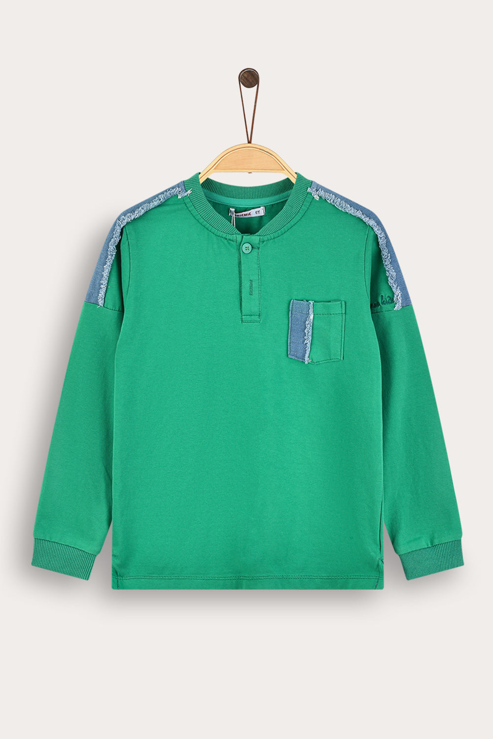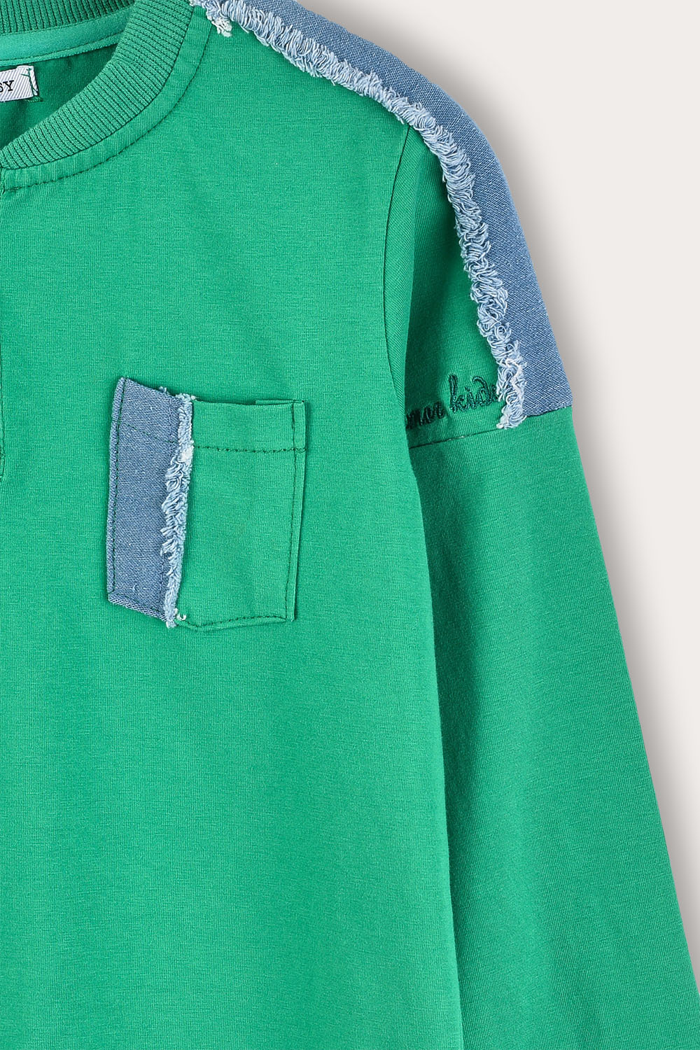 חולצה נוחה לבנים, עם שרוולים ארוכים, שני כפתורים קדמיים וכיס צדדי.