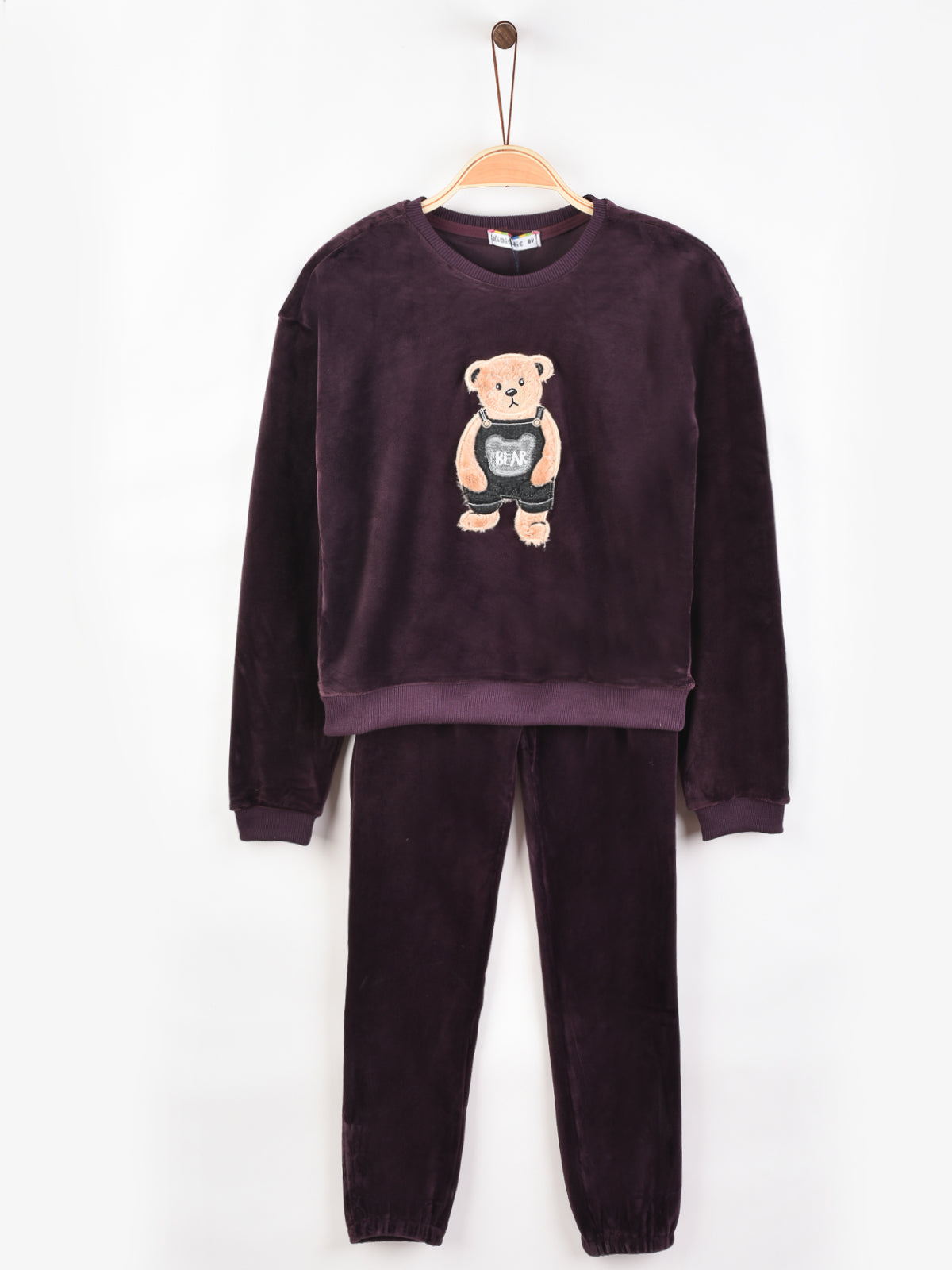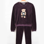 פיג'מת קטיפה עם דובי - סגול