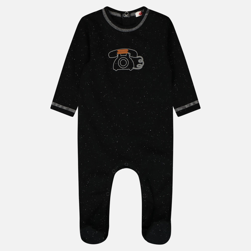 פיג'מת בייבי קטיפה עם דובי - שחור