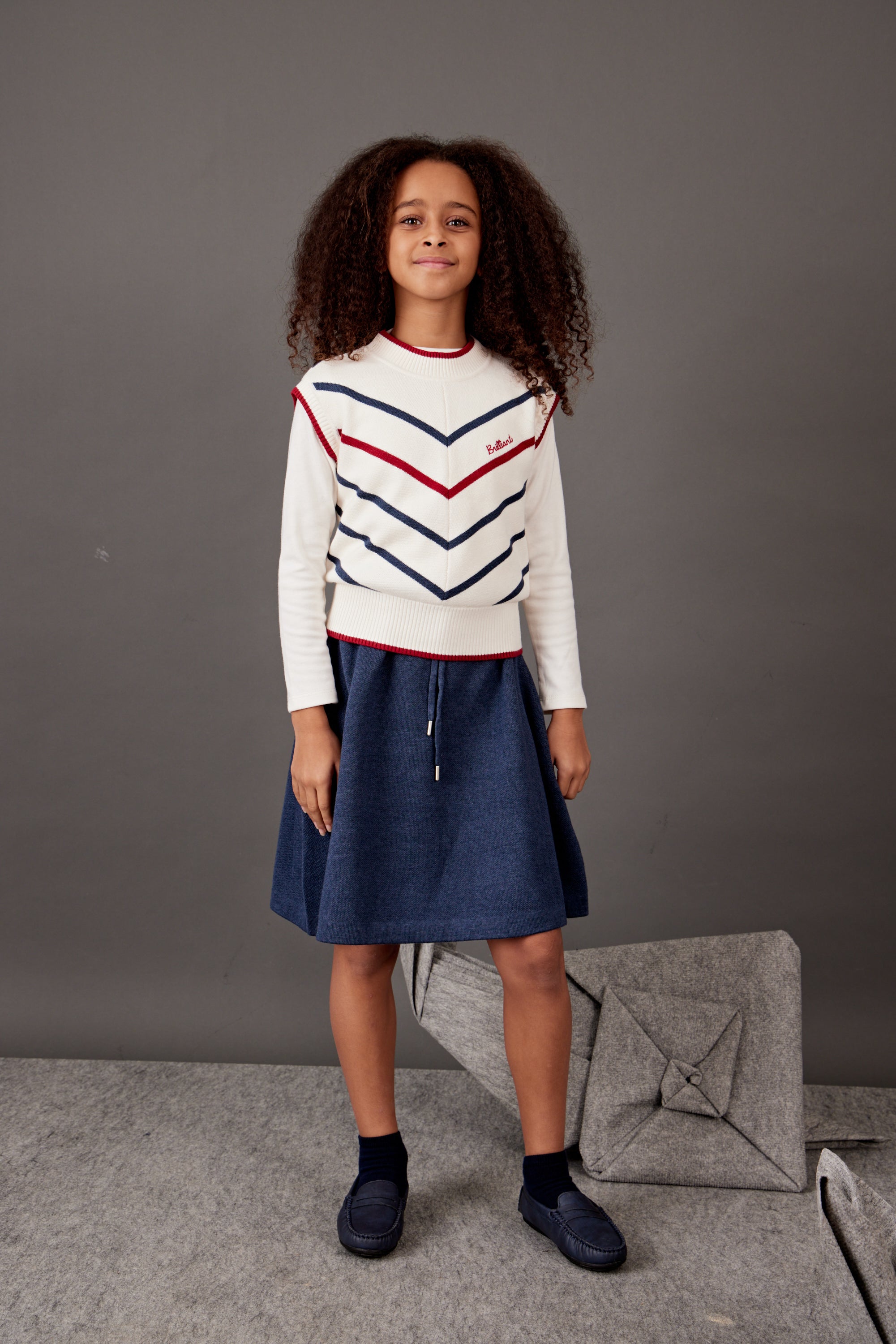 אפודת סריג פסים - נייבי