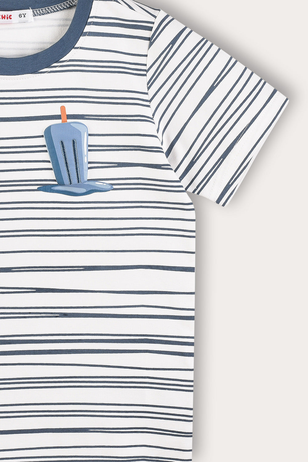 חולצת פסים קייצית לתינוק, עם הדפס ארטיק צדדי.
