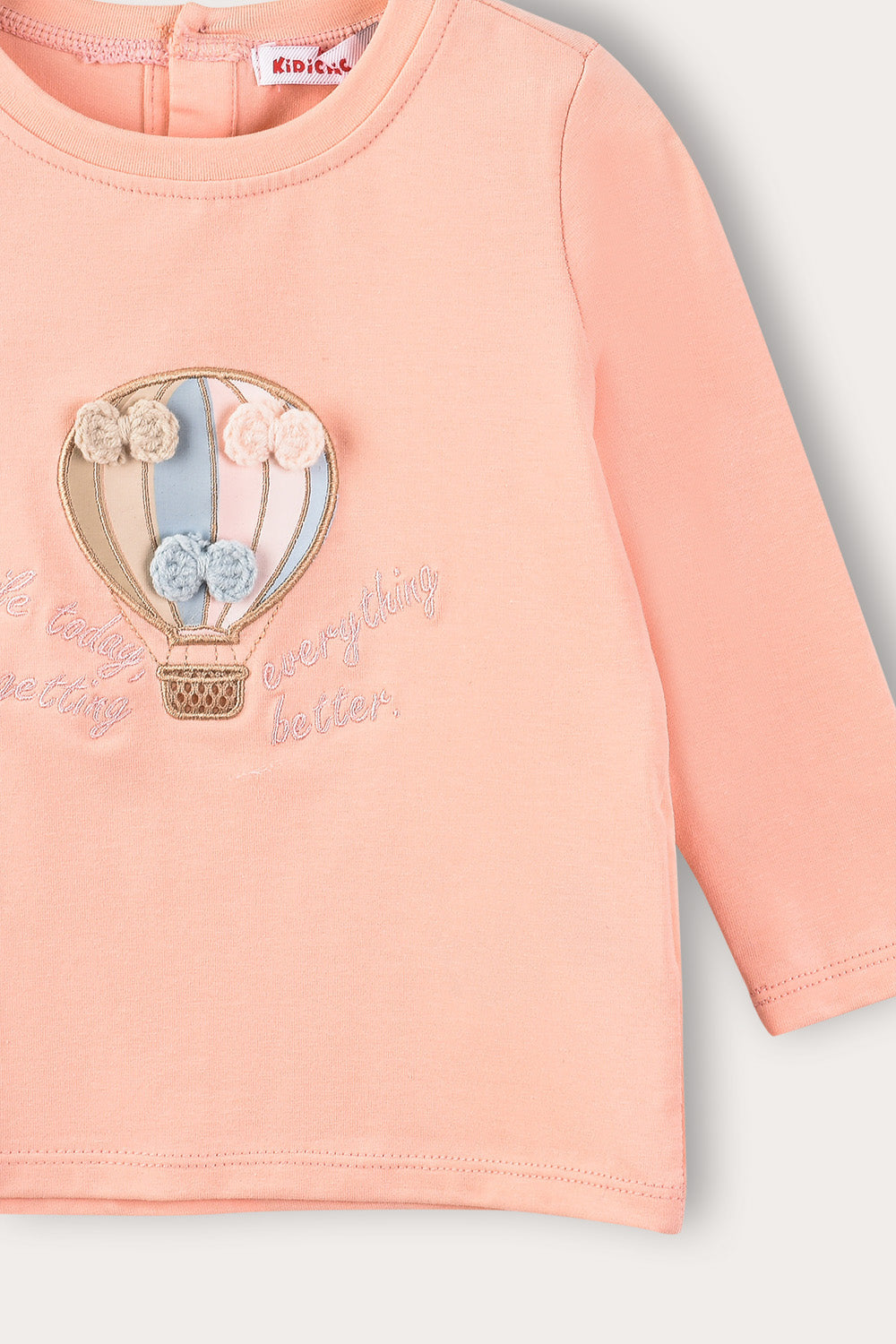 חולצה לתינוקת עם שרוולים ארוכים ומוטיב מתוק של כדור פורח.