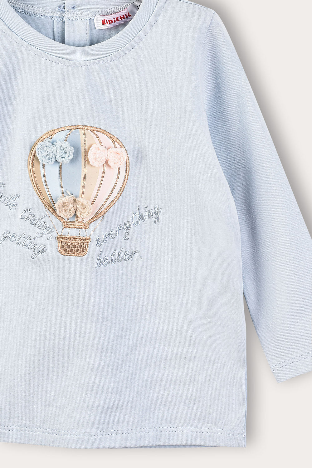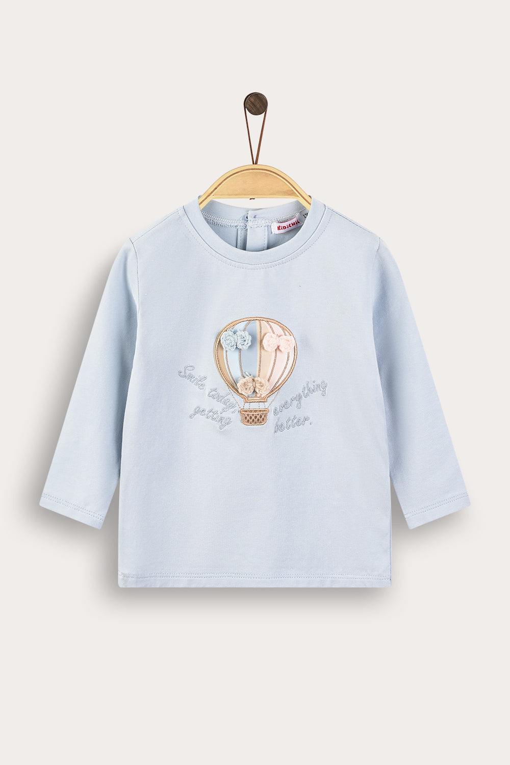 חולצה לתינוקת עם שרוולים ארוכים ומוטיב מתוק של כדור פורח.