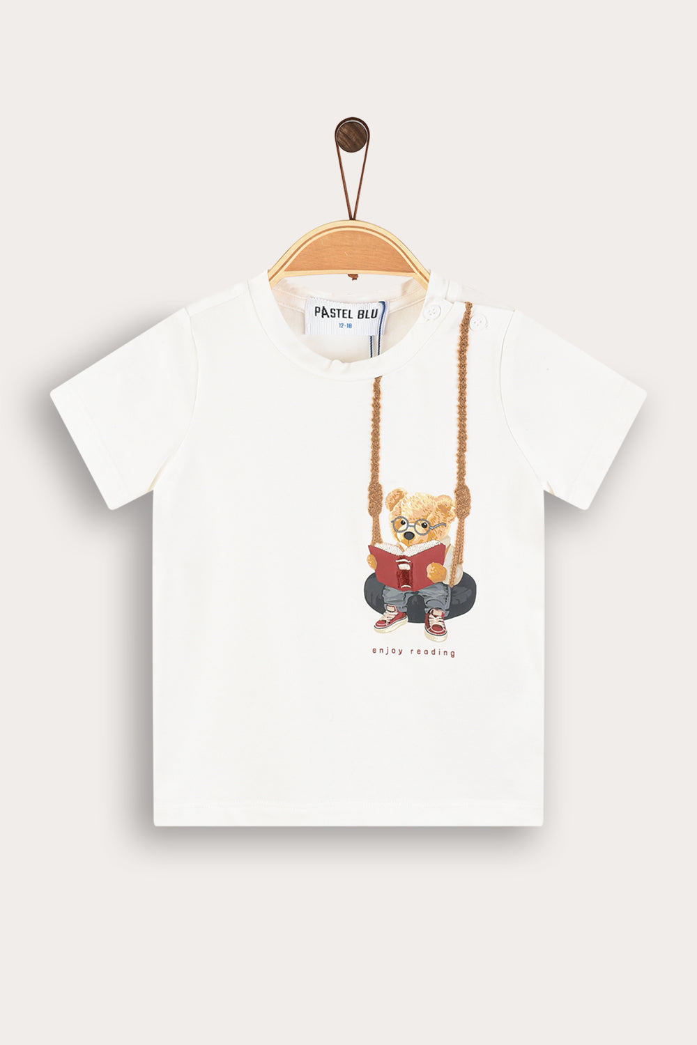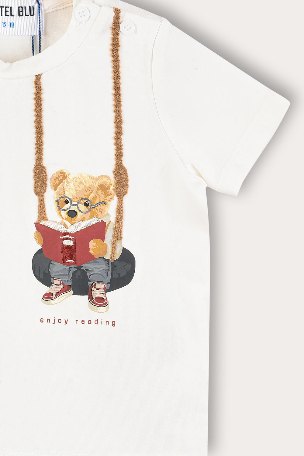 חולצת טי שירט לתינוק, עם שרוולים קצרים והדפס דובי מתוק.