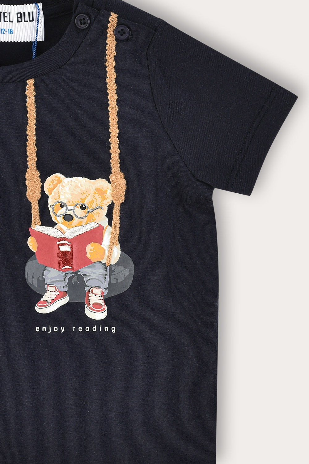 חולצת טי שירט לתינוק, עם שרוולים קצרים והדפס דובי מתוק.
