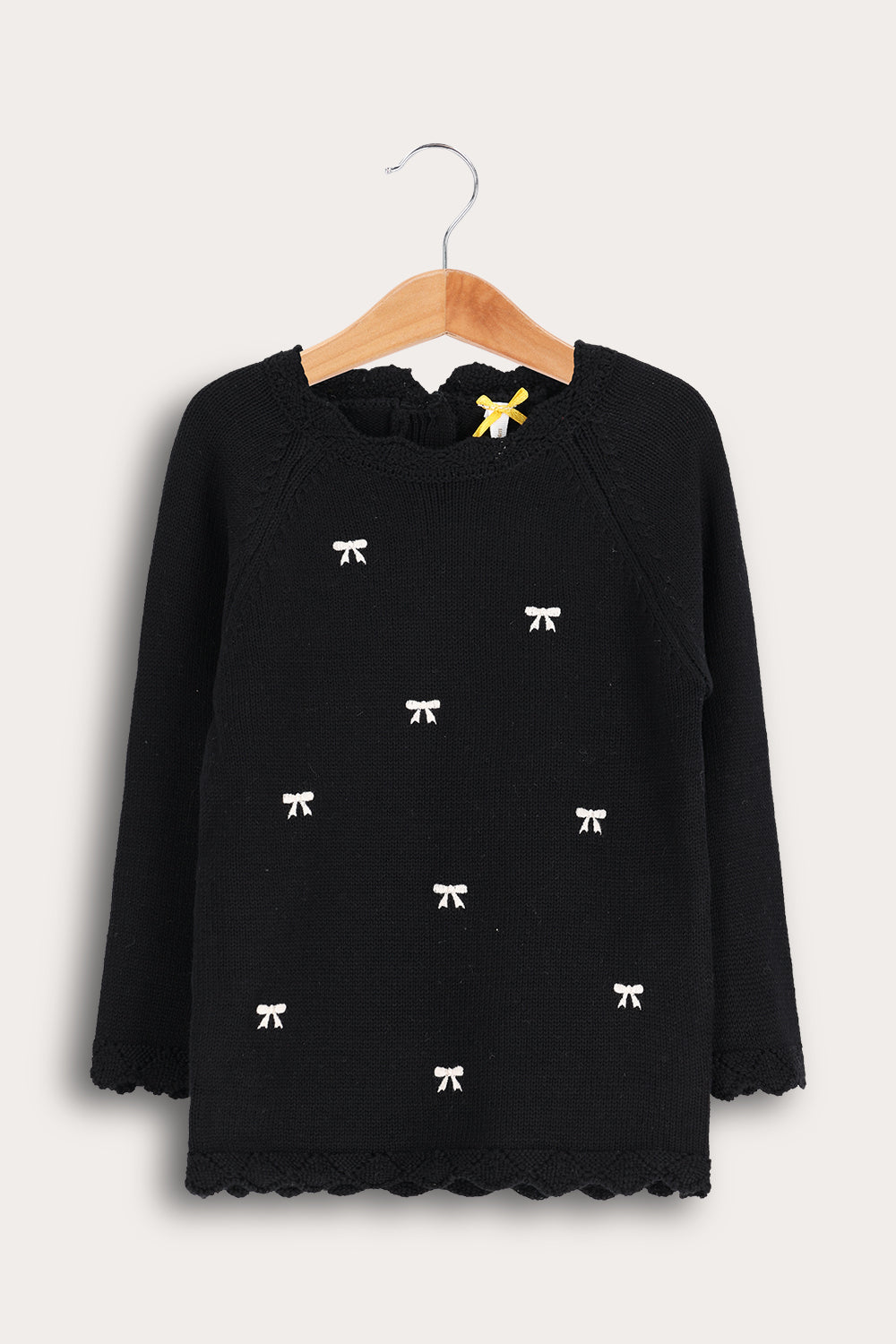 סוודר פפיונים במראה תחרה - שחור/לבן