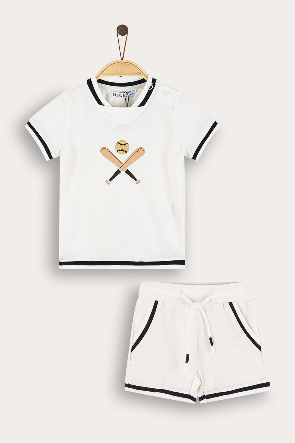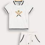 סט שני חלקים לתינוק, בעיצוב ספורטיבי עם מוטיב של בייסבול.