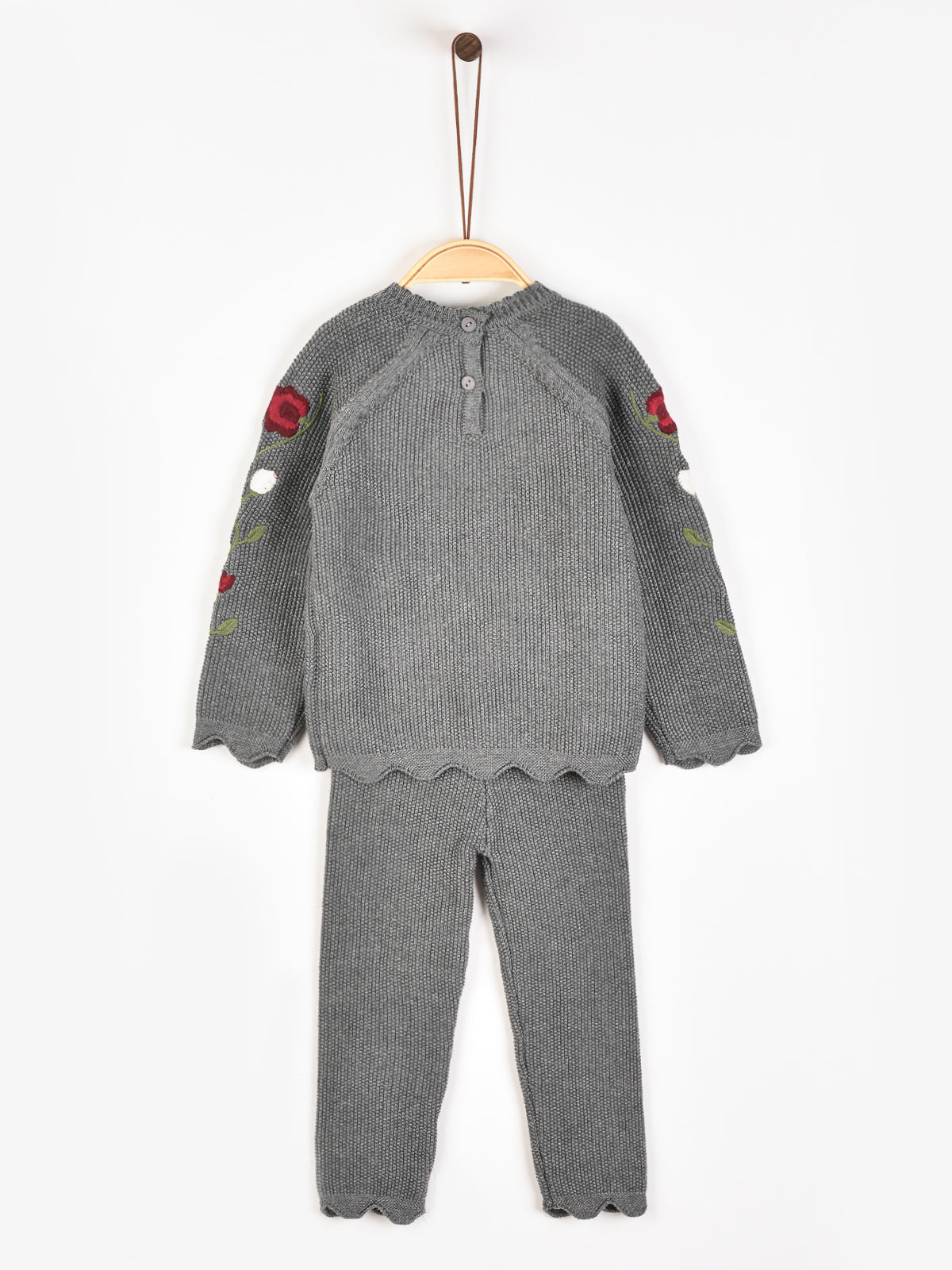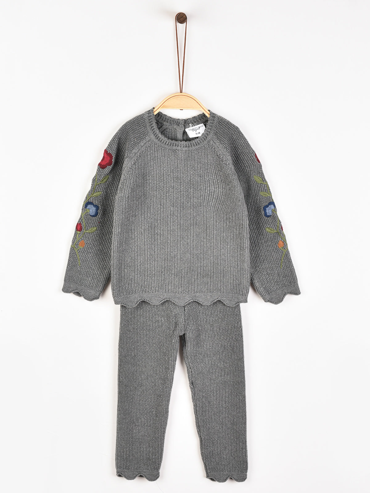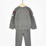 חליפת סריג עם רקמה - אפור