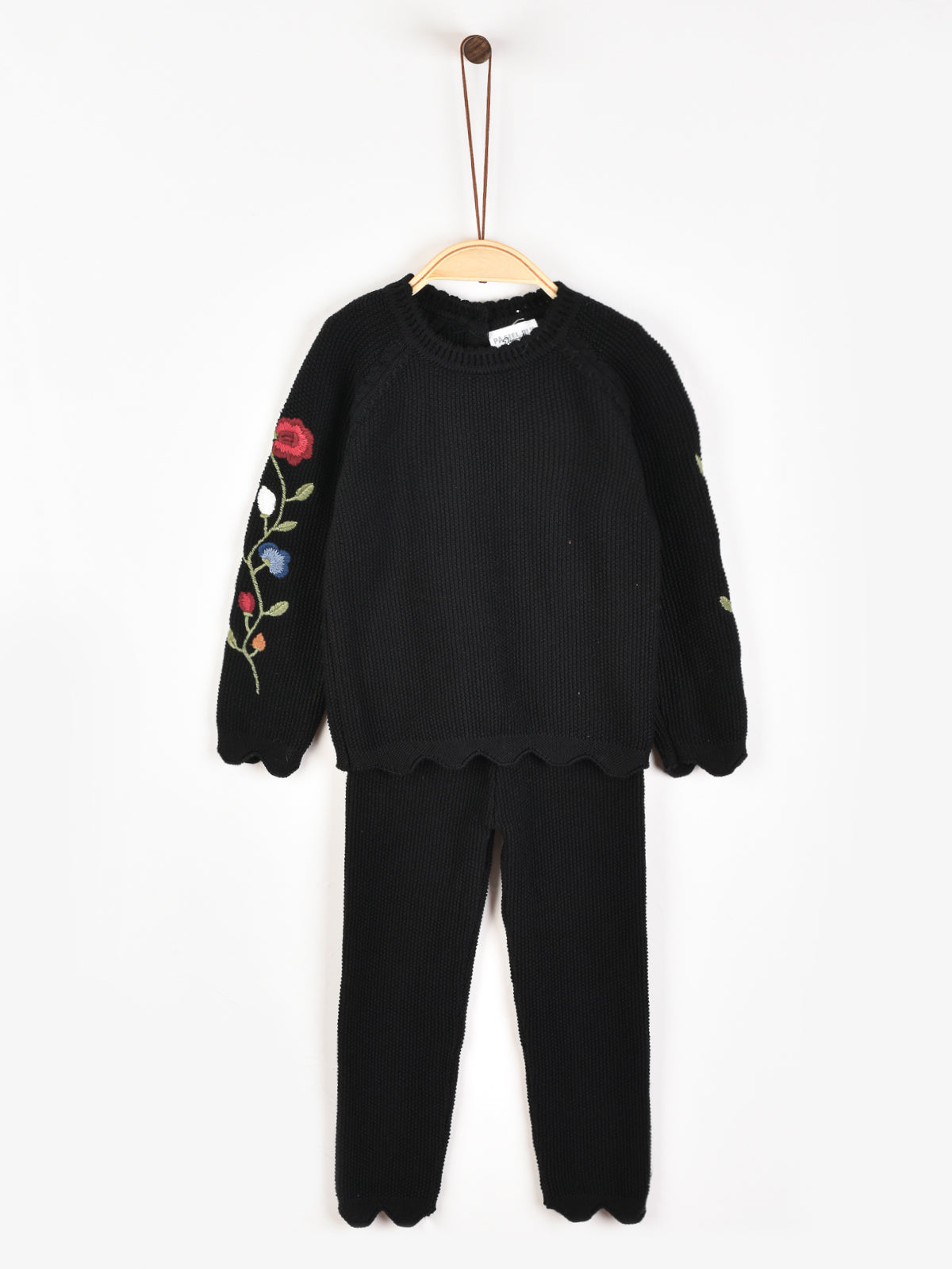 חליפת סריג עם רקמה - שחור