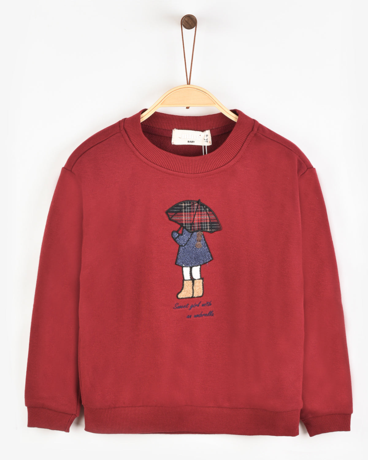 סט סריג עם צווארון פרחים - בורדו