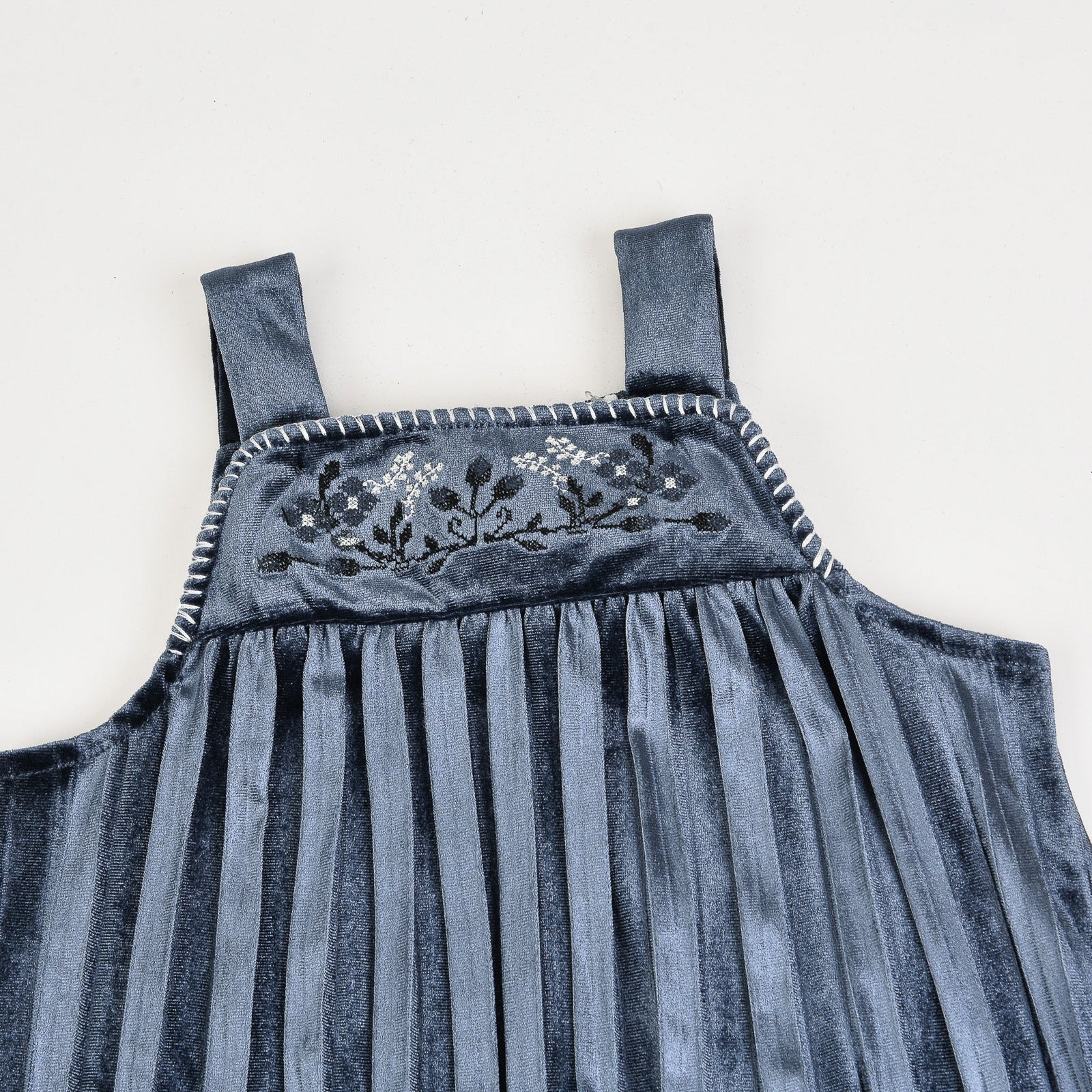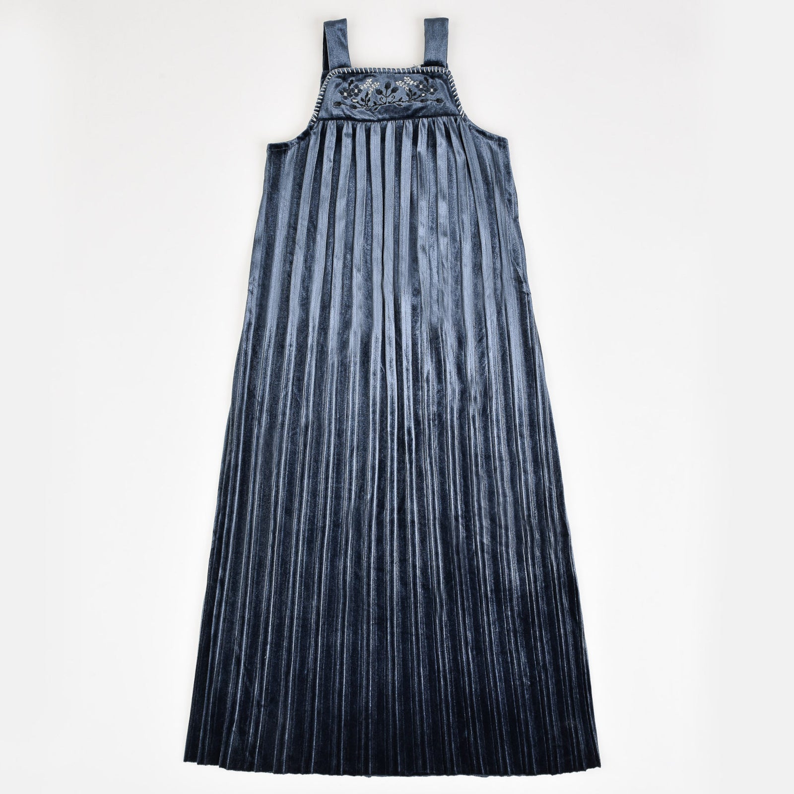 חלוק קפלים עם רקמה - כחול