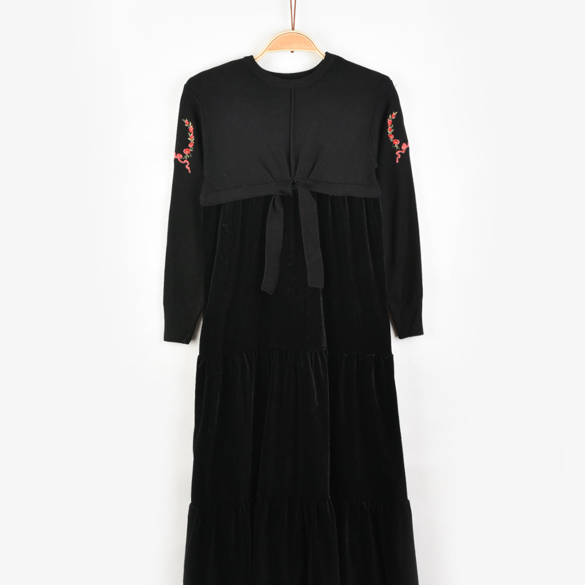 חלוק קטיפה בשילוב סריג - שחור