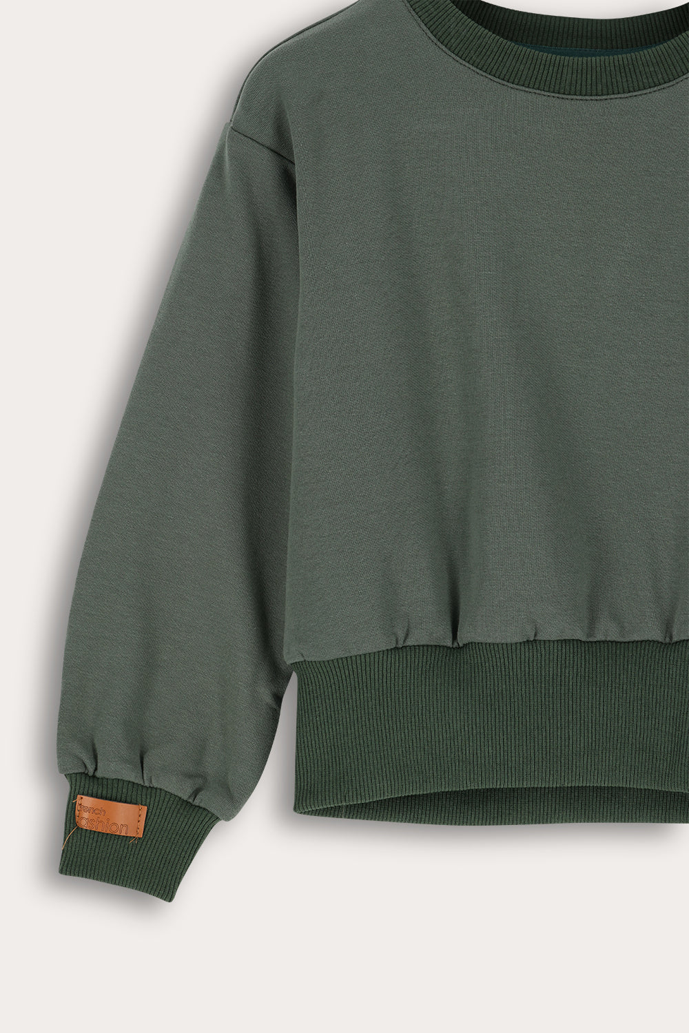 חולצת פוטר בסיומת ריב עבה - זית