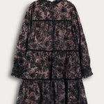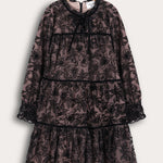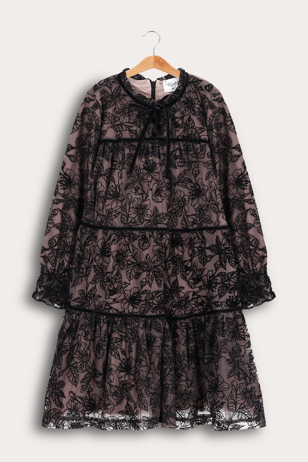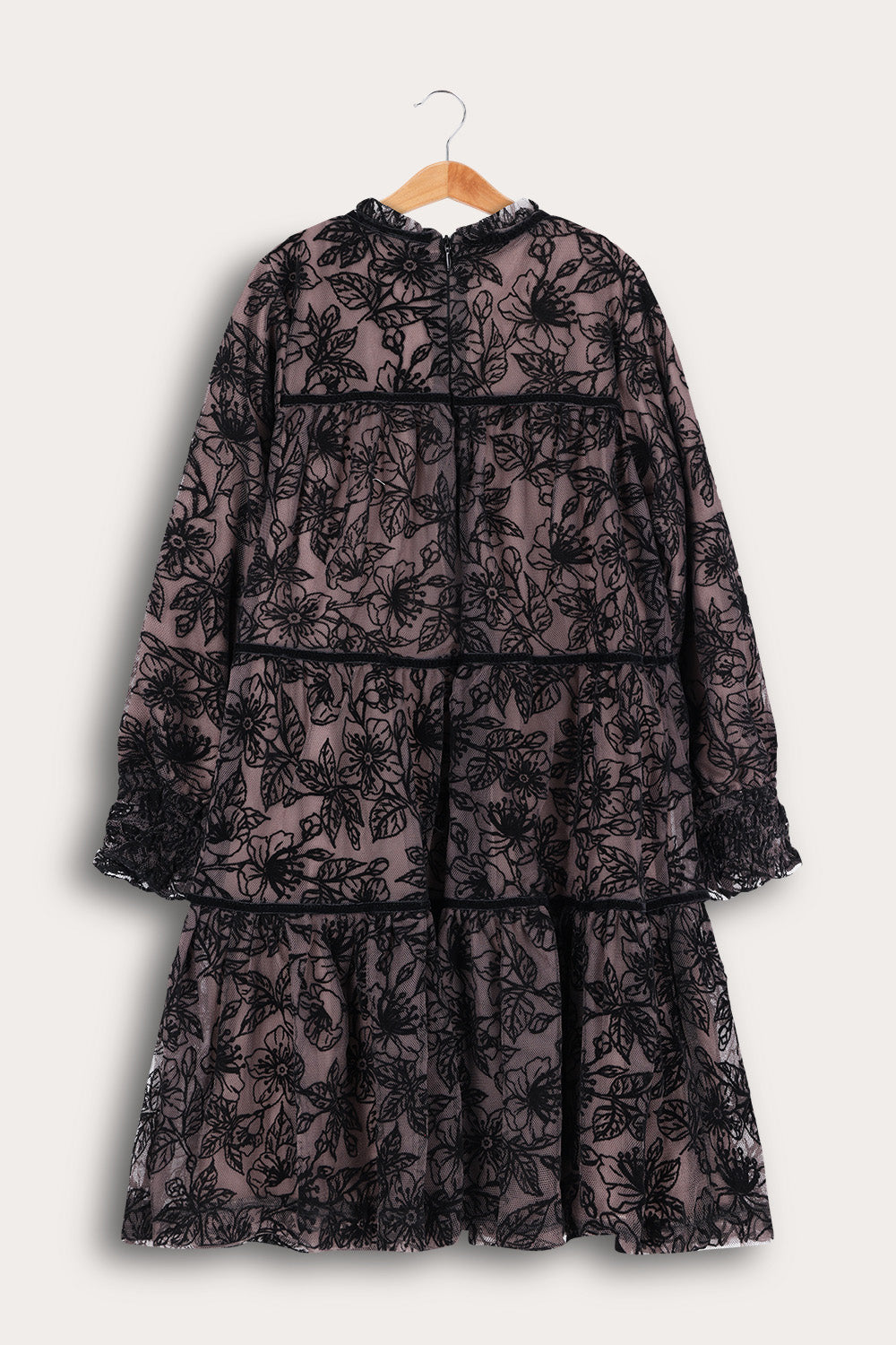שמלה עם הדפס פרחים מקטיפה - בז'