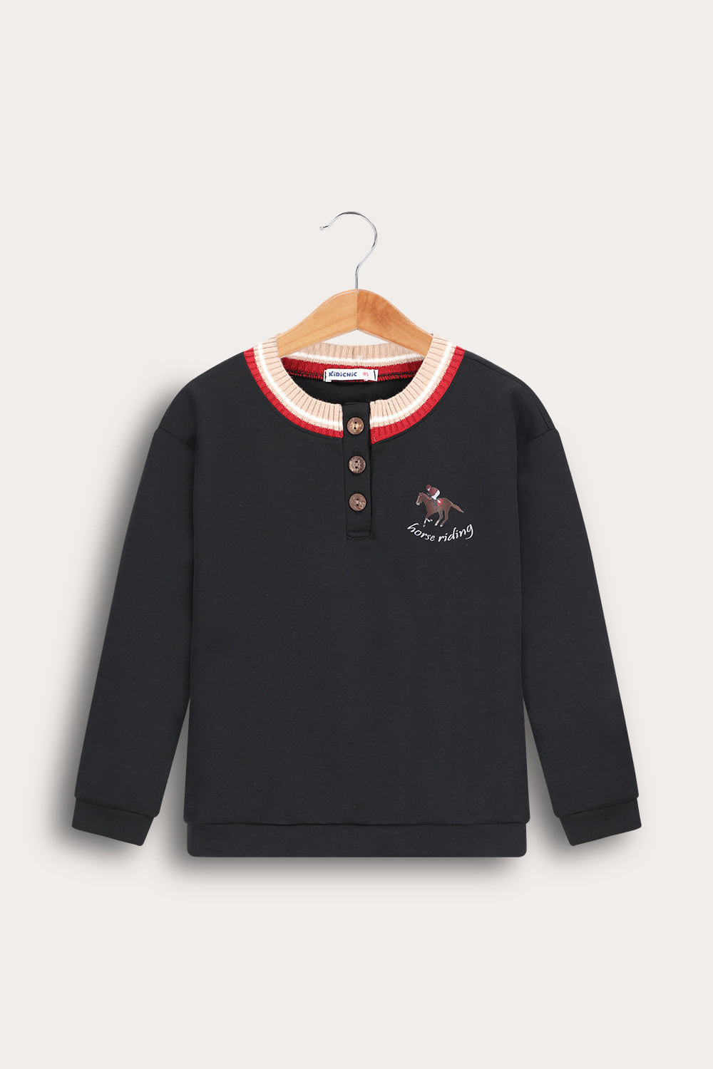 חולצה ספורטיבית עם צווארון ריב - שחור