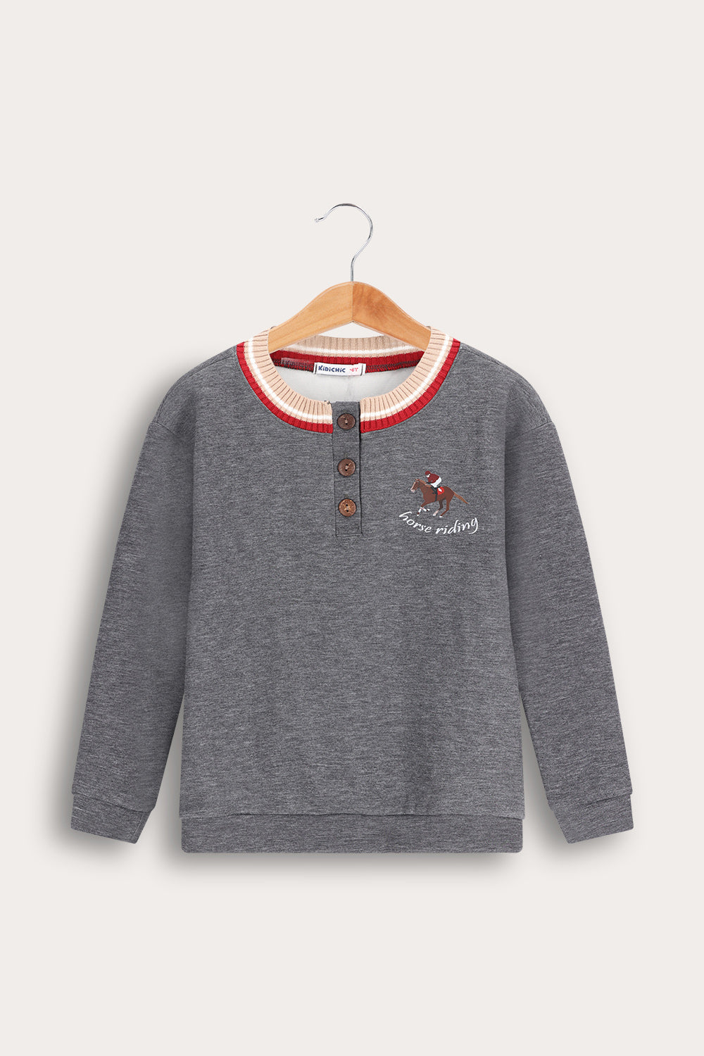 חולצה ספורטיבית עם צווארון ריב - אפור