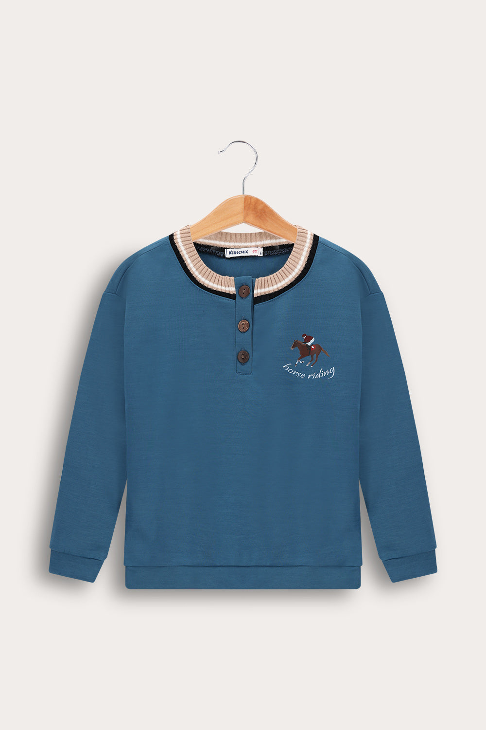 חולצה ספורטיבית עם צווארון ריב - כחול