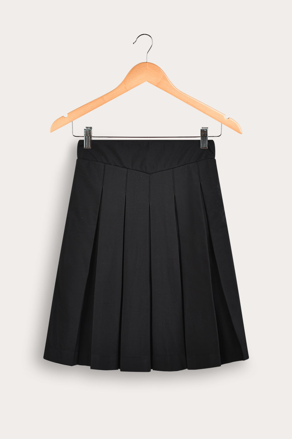 חצאית אלגנטית לבנות בעיצוב קלאסי, עם קפלים היוצרים חופש תנועה לצד מראה מסודר ונקי. גזרה מחמיאה הכוללת חגורת מותניים רחבה בזוית משולשת. גוון חלק ואחיד מאפשר שילוב קל עם מגוון חולצות חגיגיות. בחירה מושלמת להופעה מוקפדת ומרשימה לשבת ולחג.