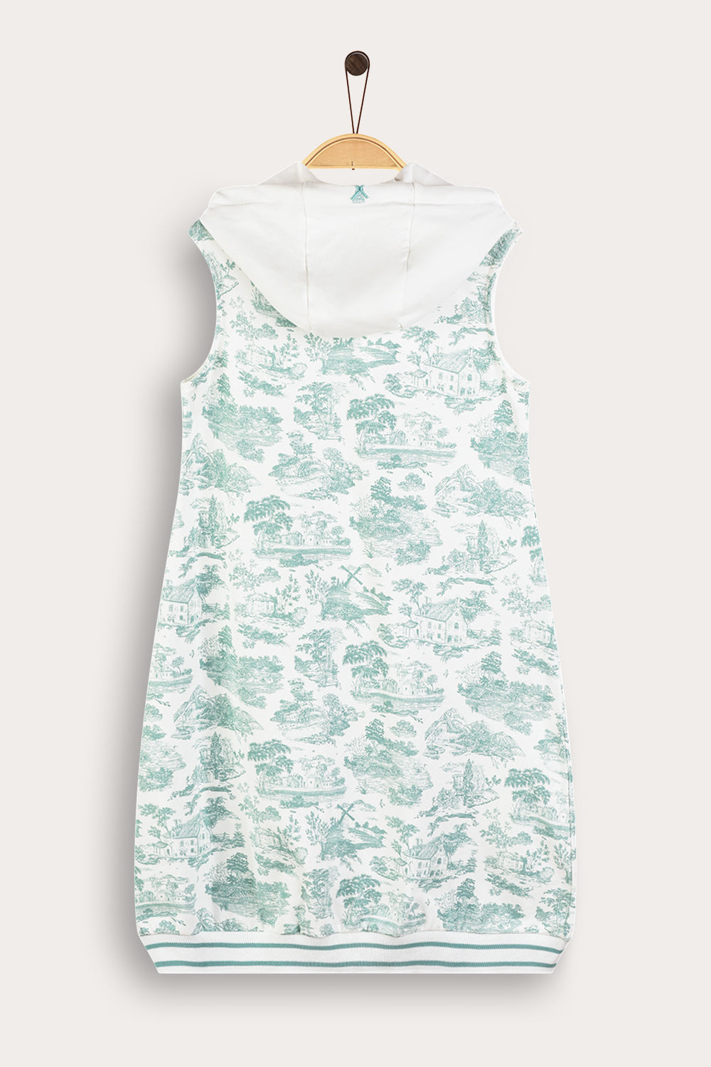 סרפן אופנתי לבנות, עשוי מבד תערובת כותנה איכותי ונושם - לנוחות מירבית לאורך כל היום. הגזרה כוללת כובע קפוצ'ון עם שרוכים ושלושה כפתורים קדמיים ללבישה קלה ומראה מסודר. הדפס בסגנון פרובאנס צרפתי וסיומת ריב פסים - משלימים הופעה מרשימה ומוקפדת, המתאימה לשימוש יום יומי וליציאות משפחתיות.