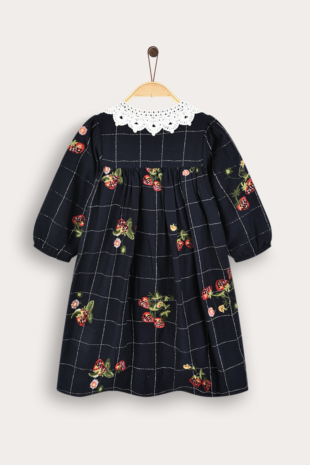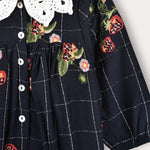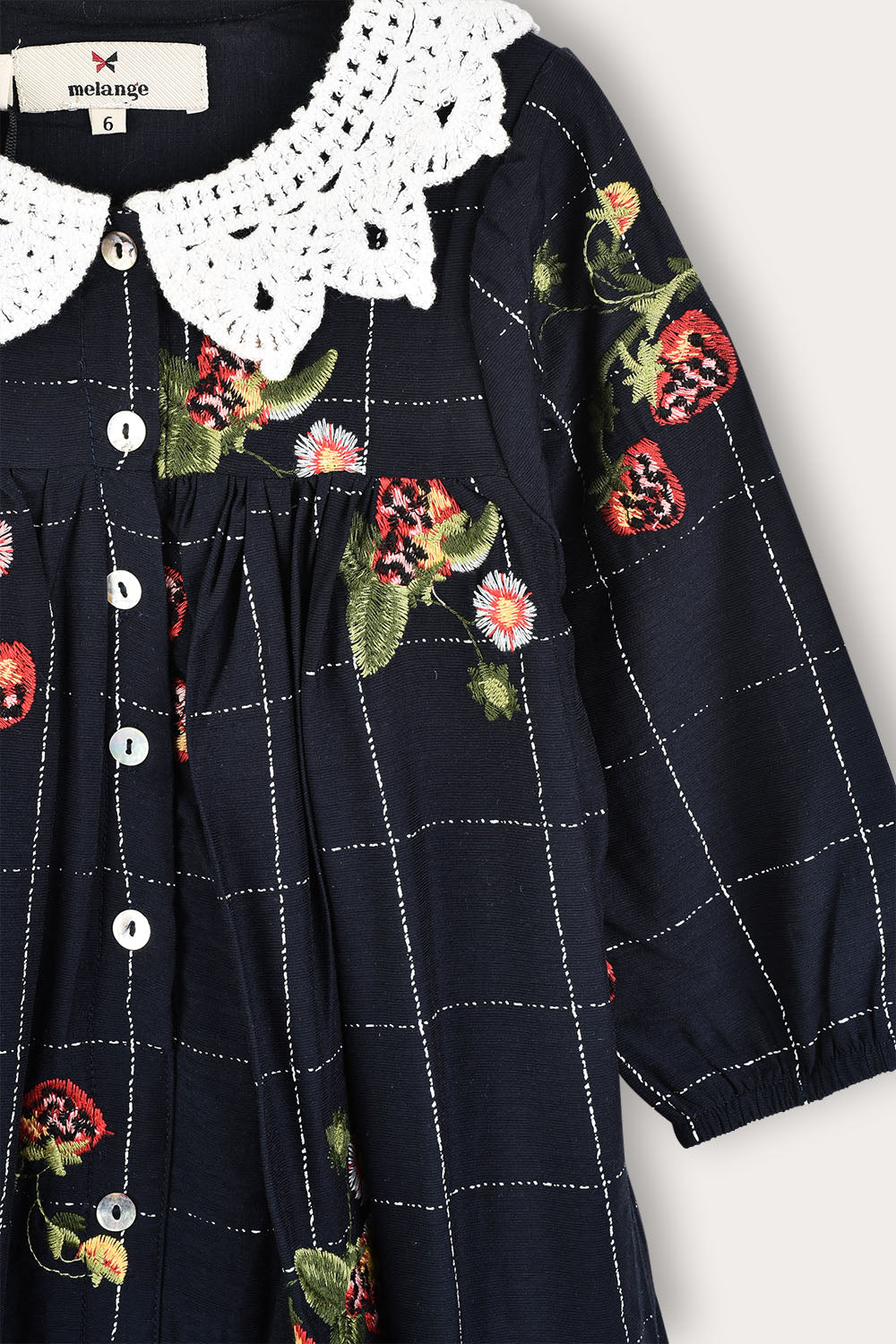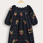 שמלת בנות אלגנטית וחיננית, בשילוב צווארון סריג קרושה עדין. מעוצבת עם כפתורים לכל האורך ושרוולים נפוחים בסיומת כיווצים, למראה מסודר ומוקפד. עשויה מבד תערובת עם ויסקוזה שמספק תחושת רכות ונוחות לאורך כל היום. הדפס משבצות משולב ברקמת פרחים צבעונית ליצירת מראה עשיר ומיוחד. פריט ייחודי וחגיגי, במיוחד לשבתות, חגים ואירועים משפחתיים.