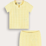 סט נעים ומוקפד לתינוק, הכולל שני חלקים בעיצוב נקי וקלאסי. עשוי בד סריג דק ונעים עם דוגמת לולאות, מתערובת כותנה איכותית - המעניק נוחות מרבית לאורך כל היום. החלק העליון - חולצה עם שרוולים קצרים, מגיע עם מכנסיים קצרים תואמים, בגוון חלק ואחיד. בחירה מושלמת להופעה מסודרת ומרשימה, אידיאלית לשבתות, חגים ויציאות משפחתיות.
